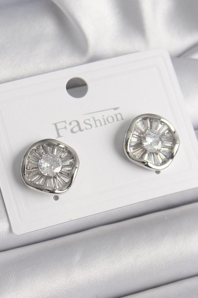 Pirinç Gümüş Renk Zirkon Taşlı Yonca Model Kadın Küpe - TJ-BKP9851