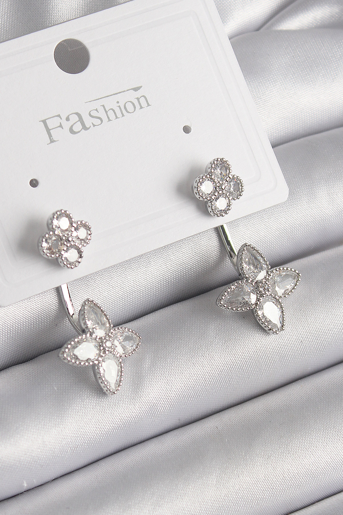 Pirinç Gümüş Renk Zirkon Taşlı Yonca Model Kadın Küpe - TJ-BKP9968