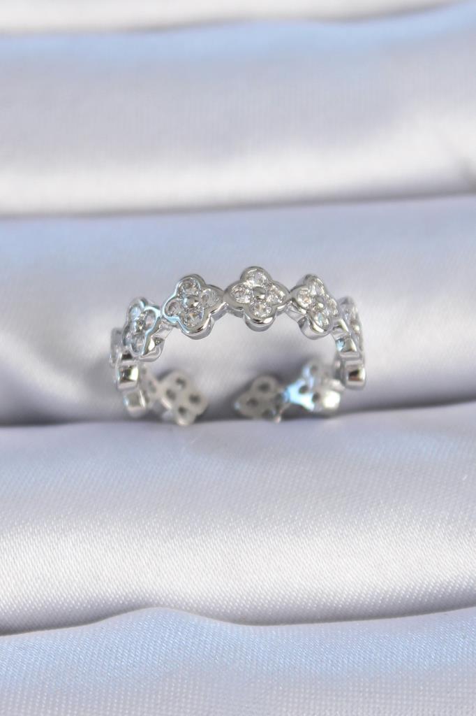 Pirinç Gümüş Renk Zirkon Taşlı Yonca Model Kadın Yüzük - TJ-BYK3305