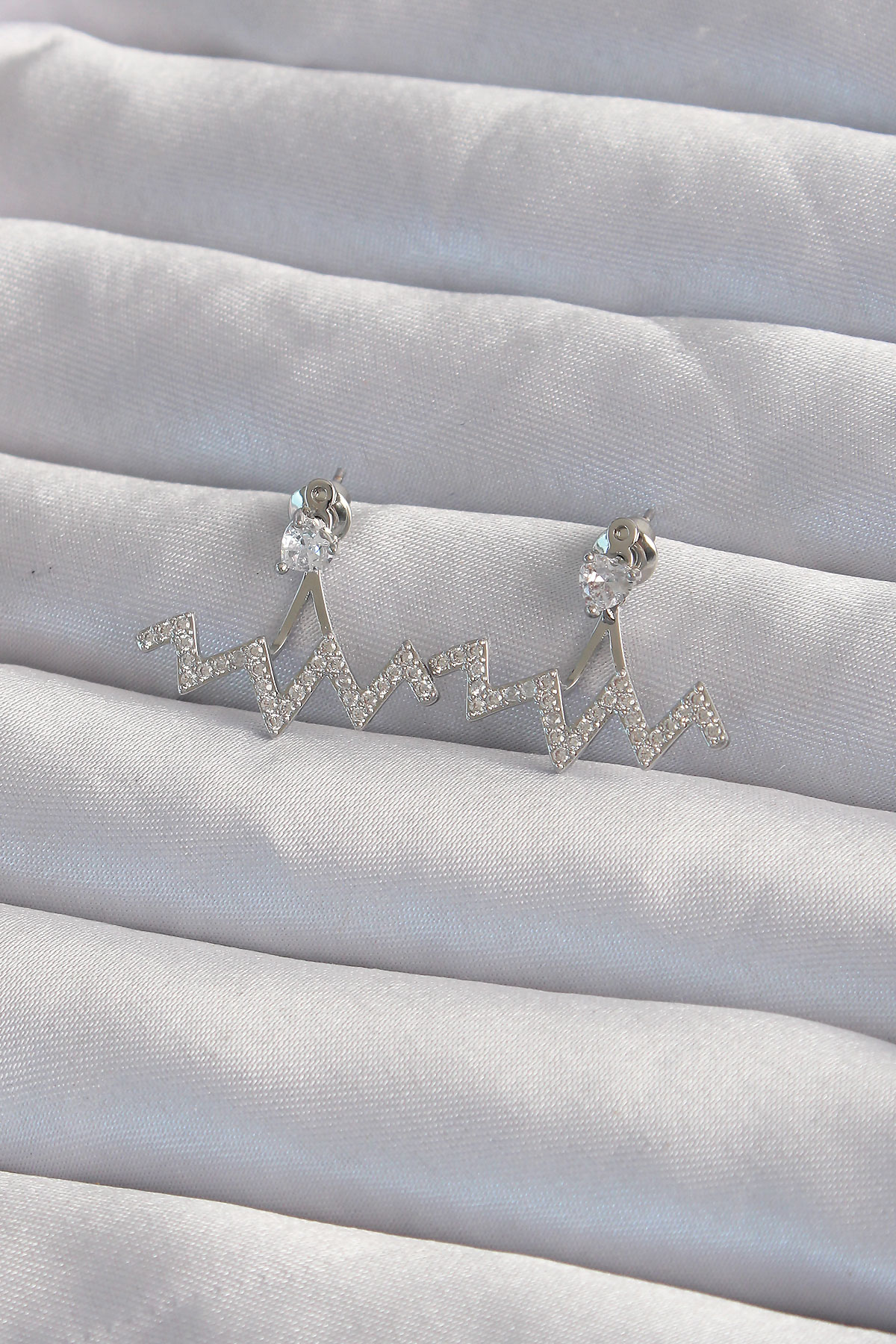 Pirinç Gümüş Renk Zirkon Taşlı Zikzak Küpe - TJ-BKP9302