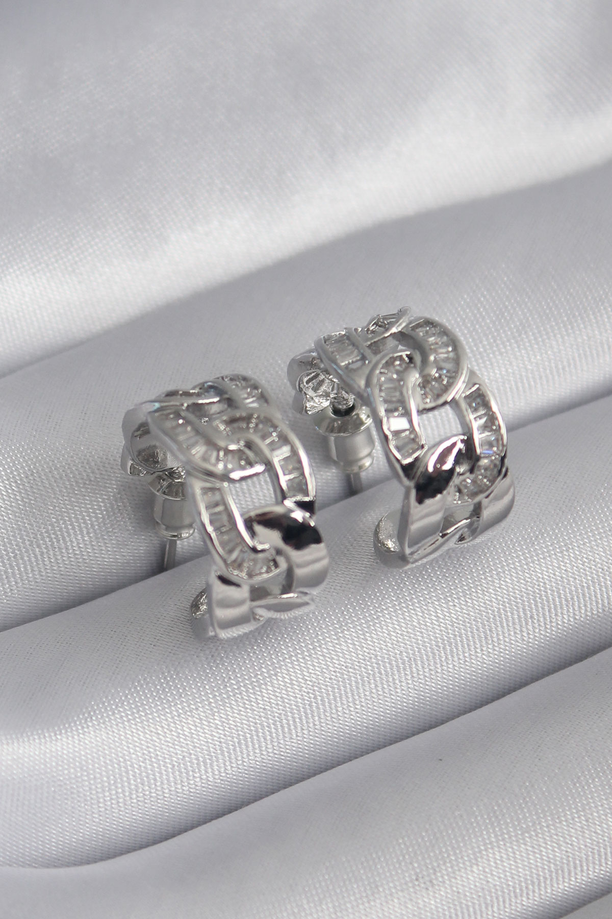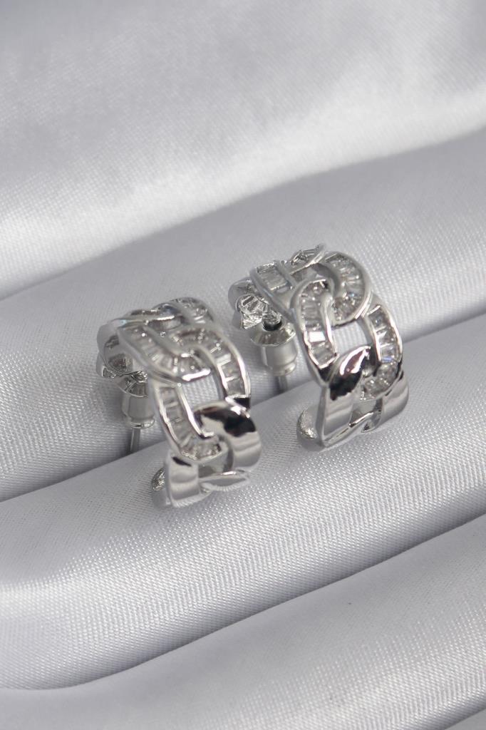 Pirinç Gümüş Renk Zirkon Taşlı Zincir Model Kadın Küpe - TJ-BKP8451