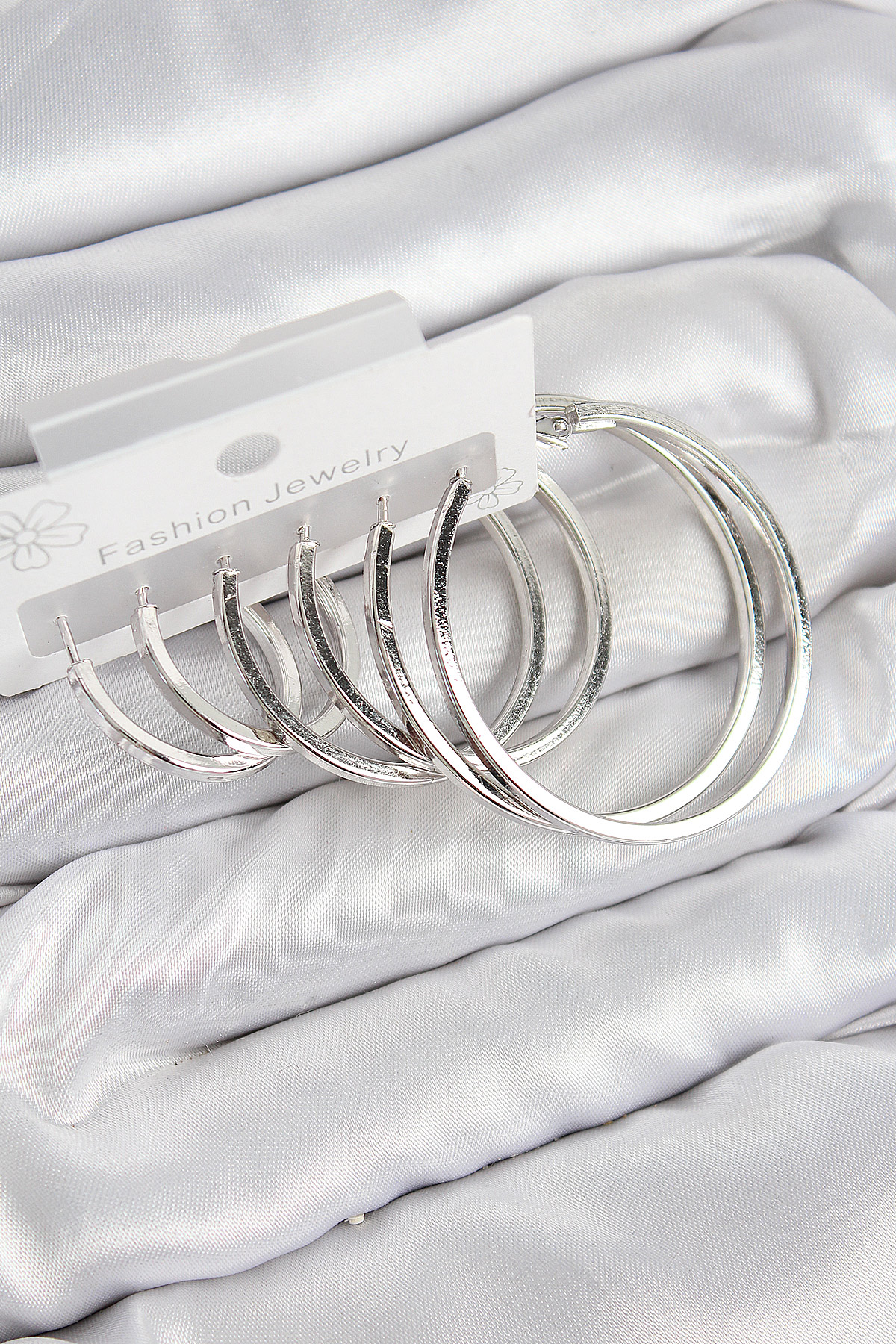 Pirinç Halka Model Gümüş Renk Kadın Set Küpe - TJ-BKP11050