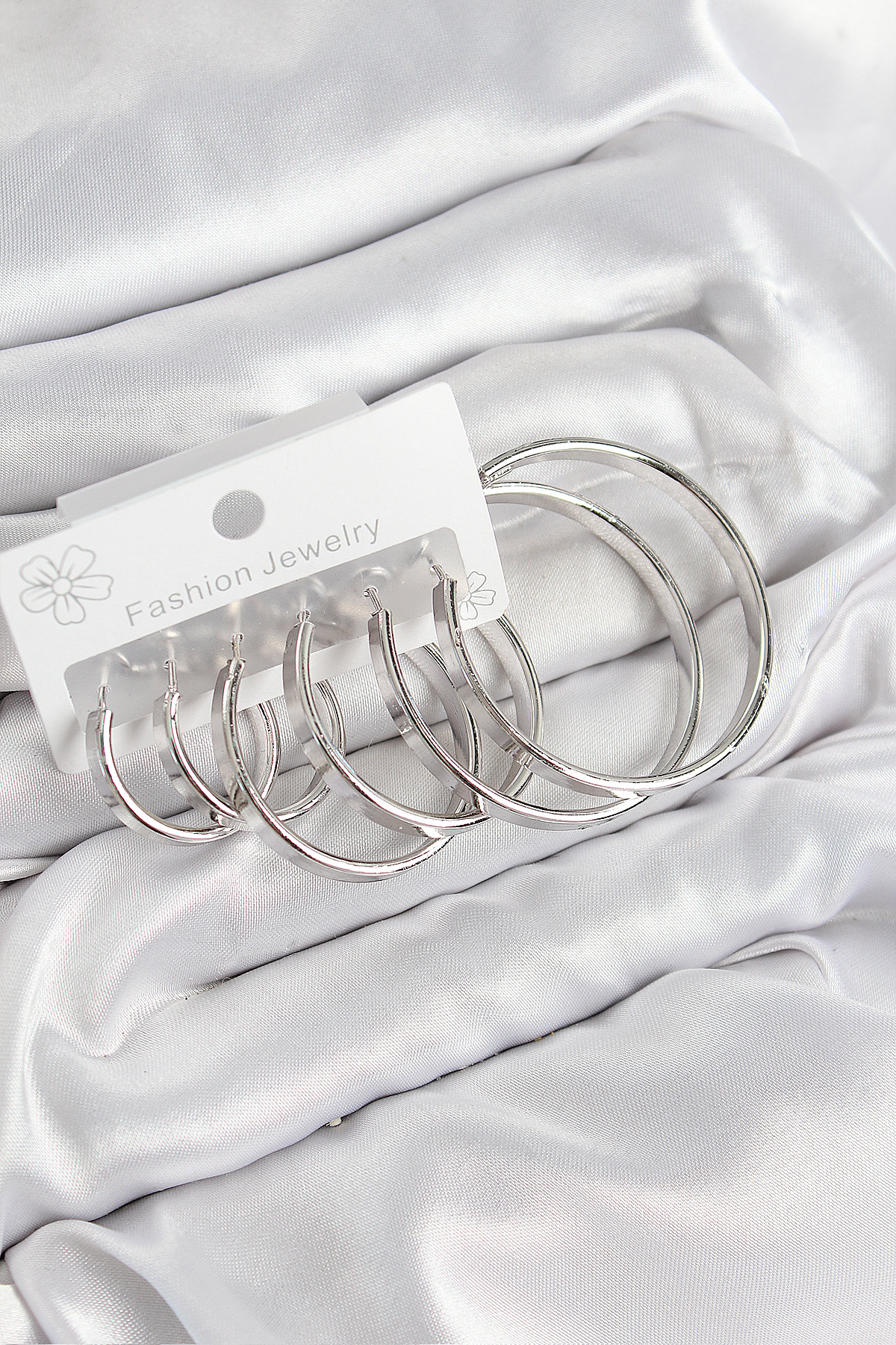 Pirinç Halka Model Gümüş Renk Kadın Set Küpe - TJ-BKP11054