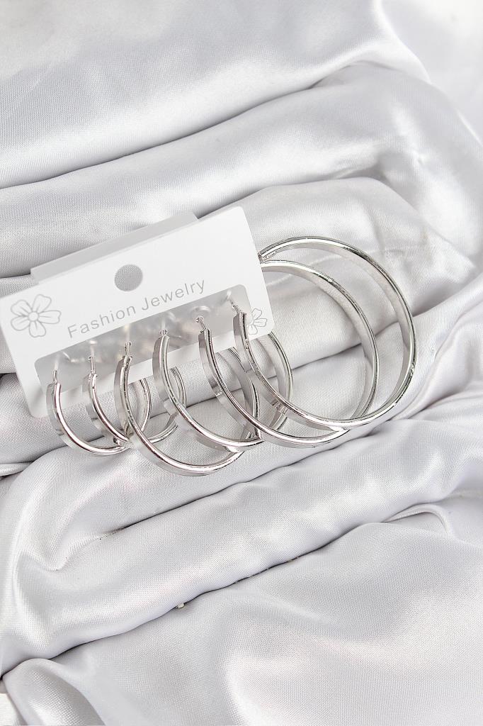 Pirinç Halka Model Gümüş Renk Kadın Set Küpe - BKP11054