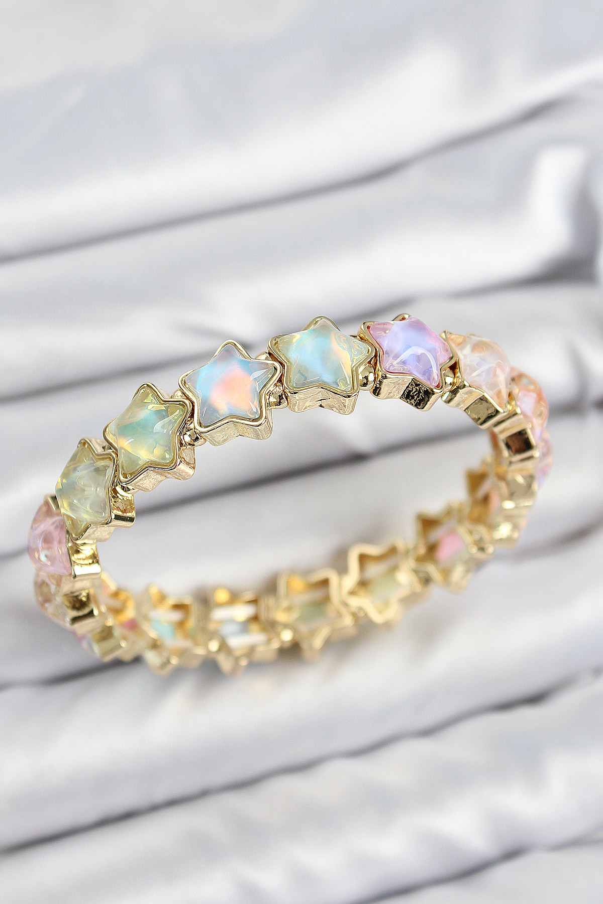 Pirinç Hologram Yıldız Model Gold Renk Lastikli Kadın Bileklik - TJ-BB7649