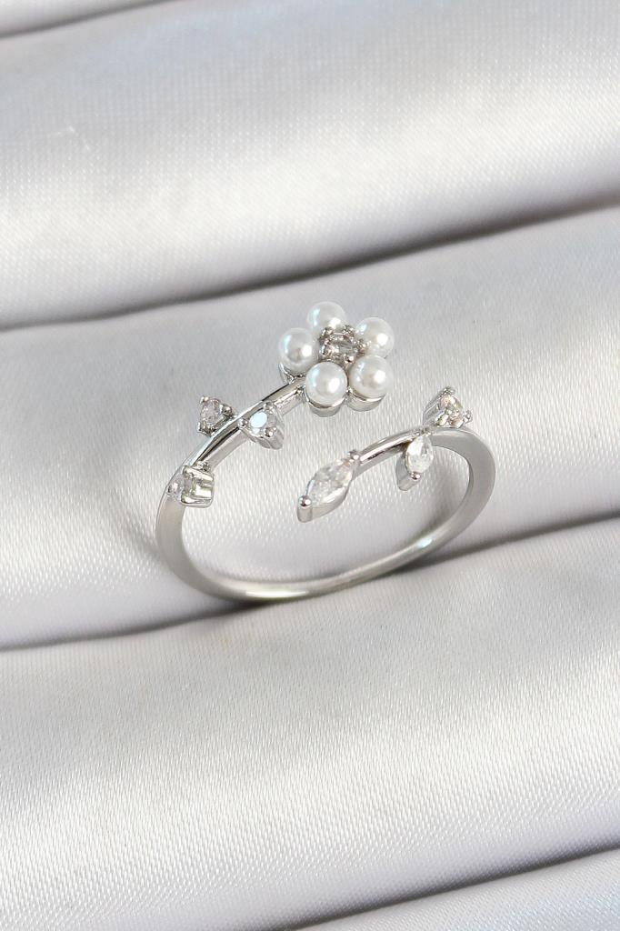 Pirinç İnci Detaylı Papatya Figürlü Zirkon Taşlı Gümüş Renk Ayarlanabilir Kadın Yüzük - BYK3771