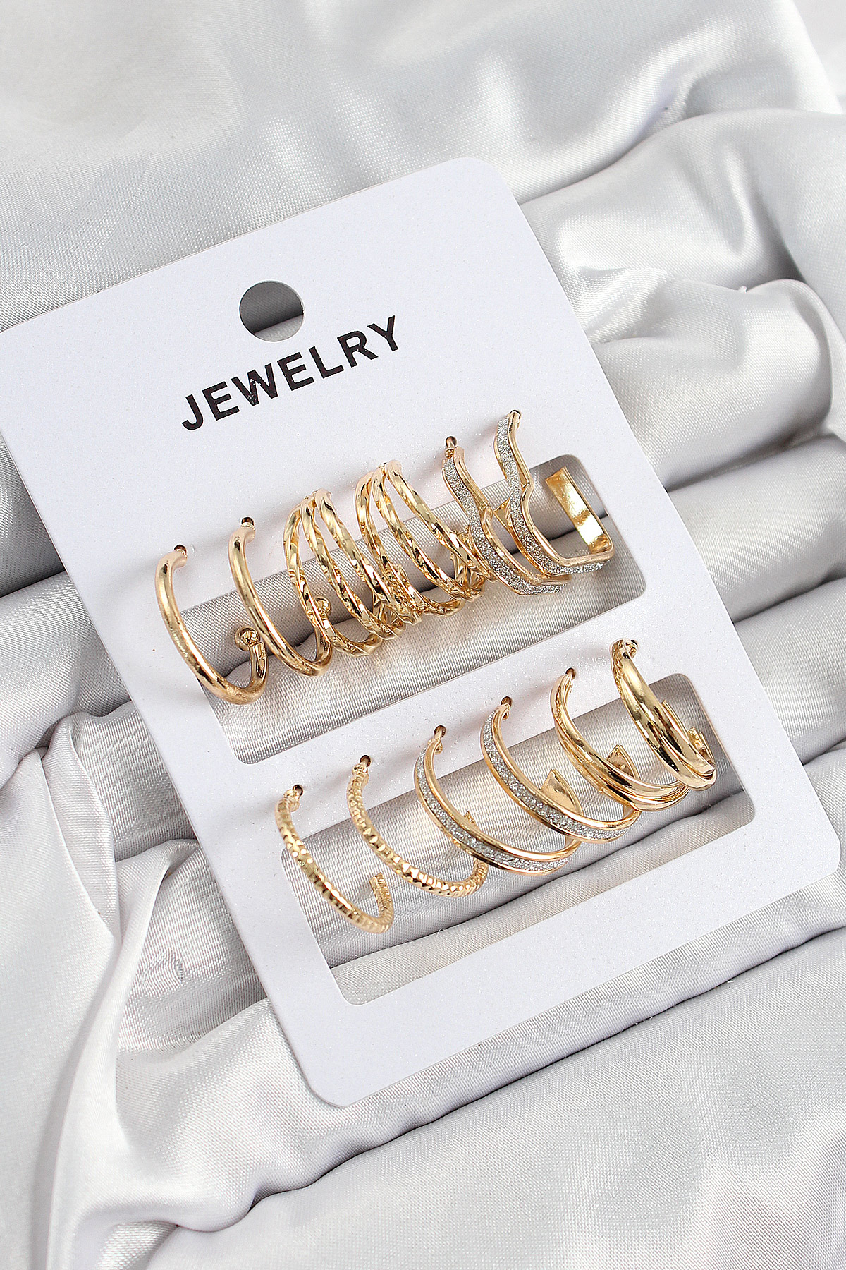 Pirinç Karışık Halka Model Gold Renk 6 Çift Kadın Küpe Set - TJ-BKP10884