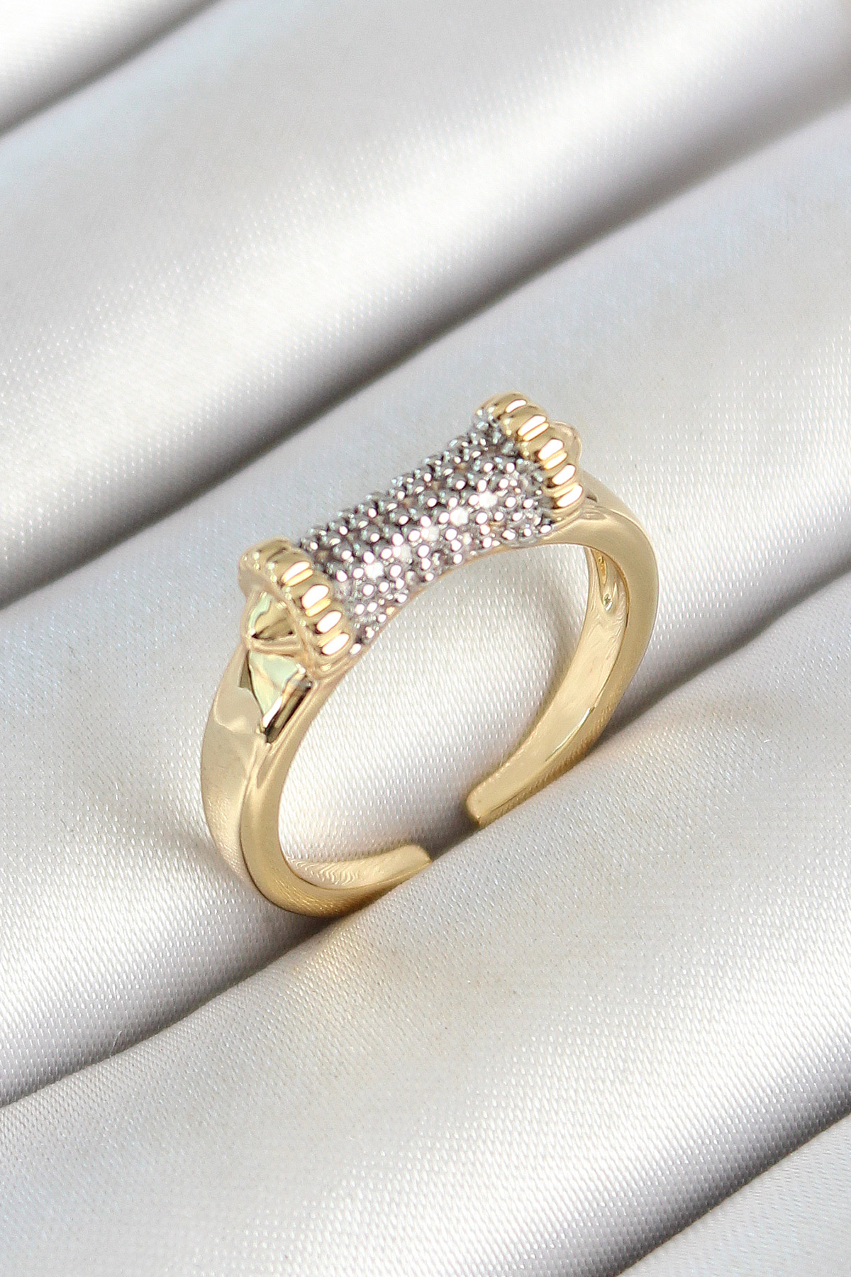 Pirinç Makara Figürlü Zirkon Taşlı Gold Renk Ayarlanabilir Kadın Yüzük - TJ-BYK3782