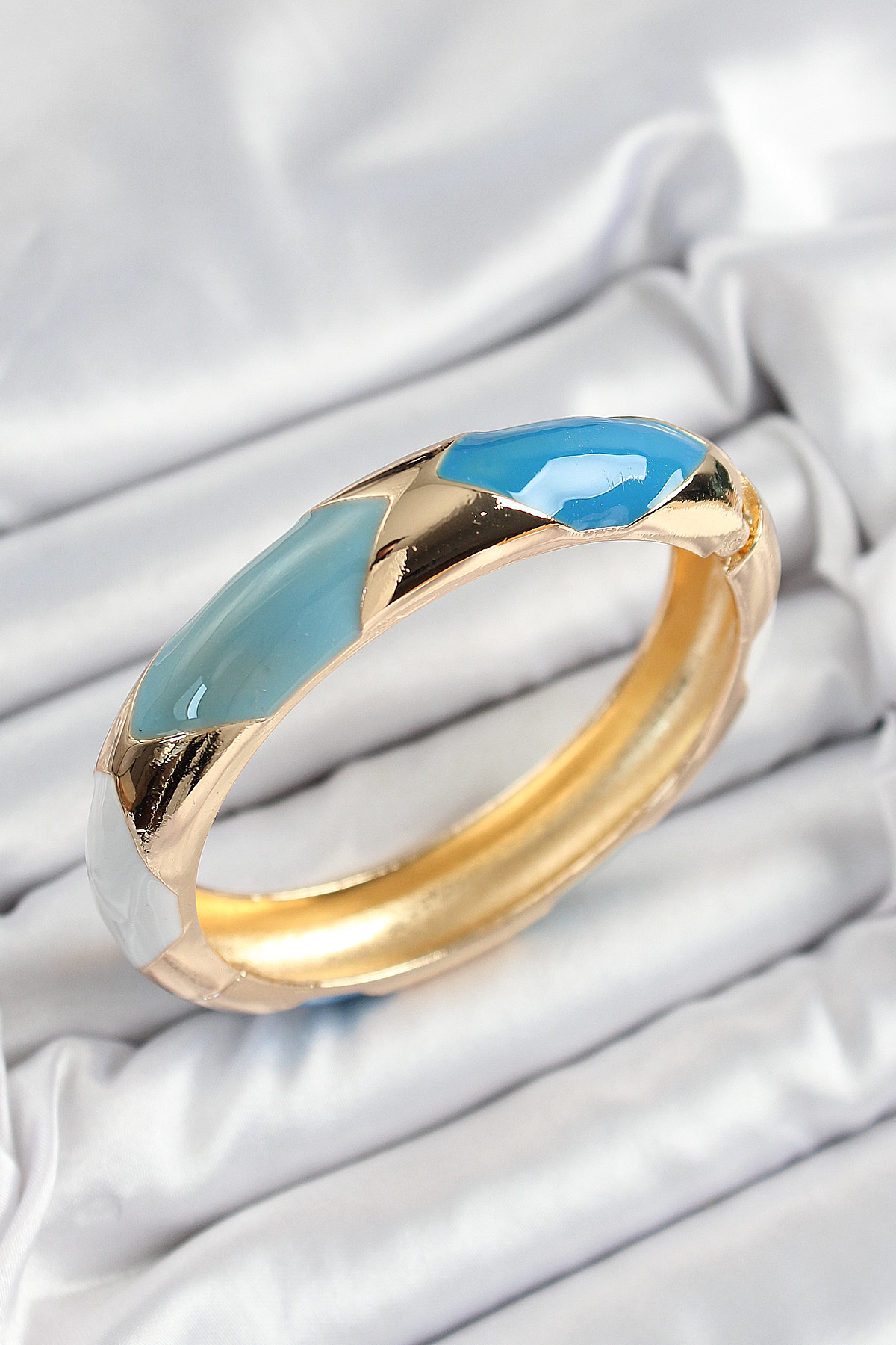 Pirinç Mavi Beyaz Mineli Baklava Model Gold Renk Kadın Kelepçe - TJ-BB7330