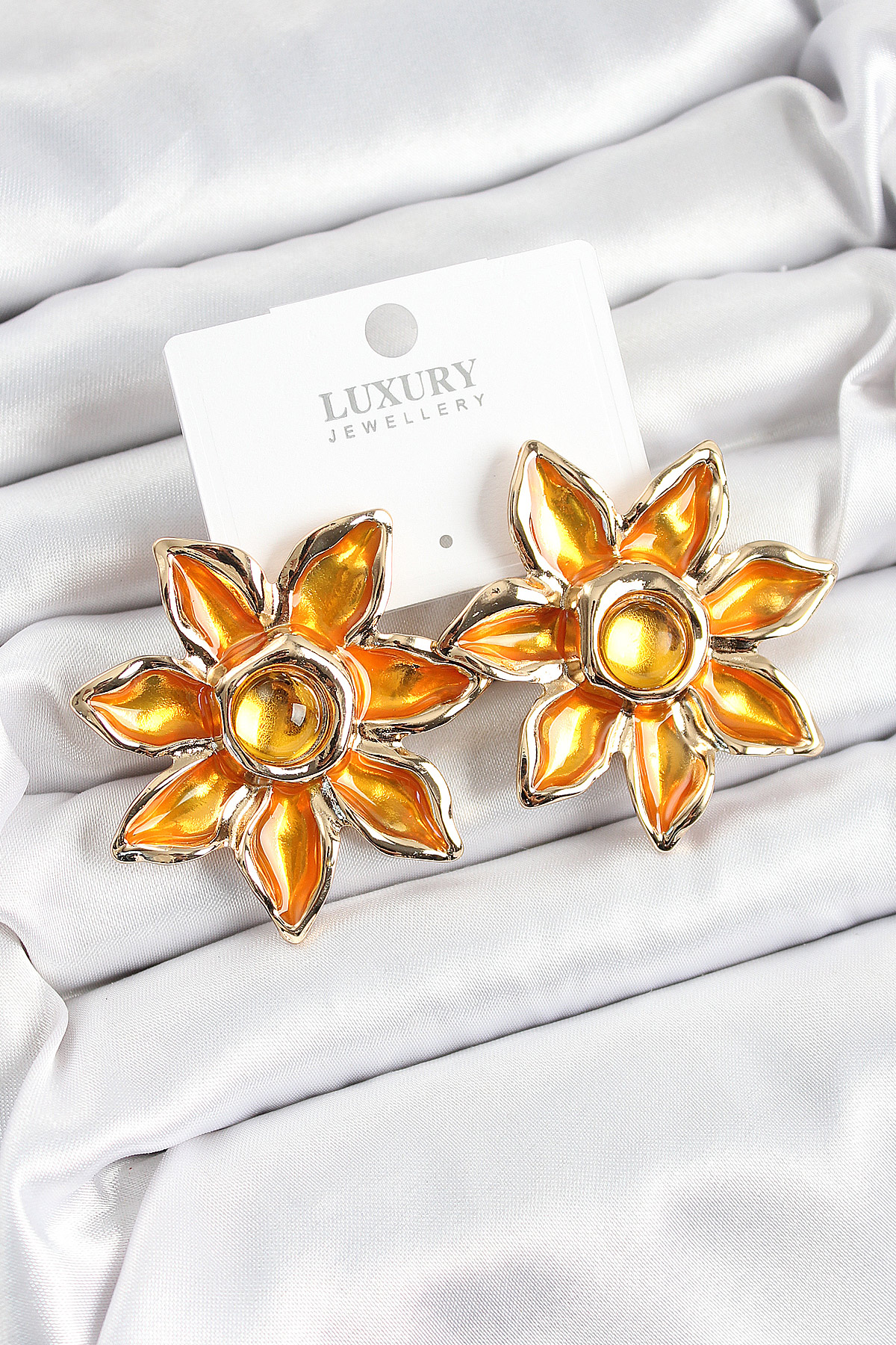 Pirinç Mineli Alevli Çiçek Model Gold Renk Kadın Küpe - TJ-BKP10748