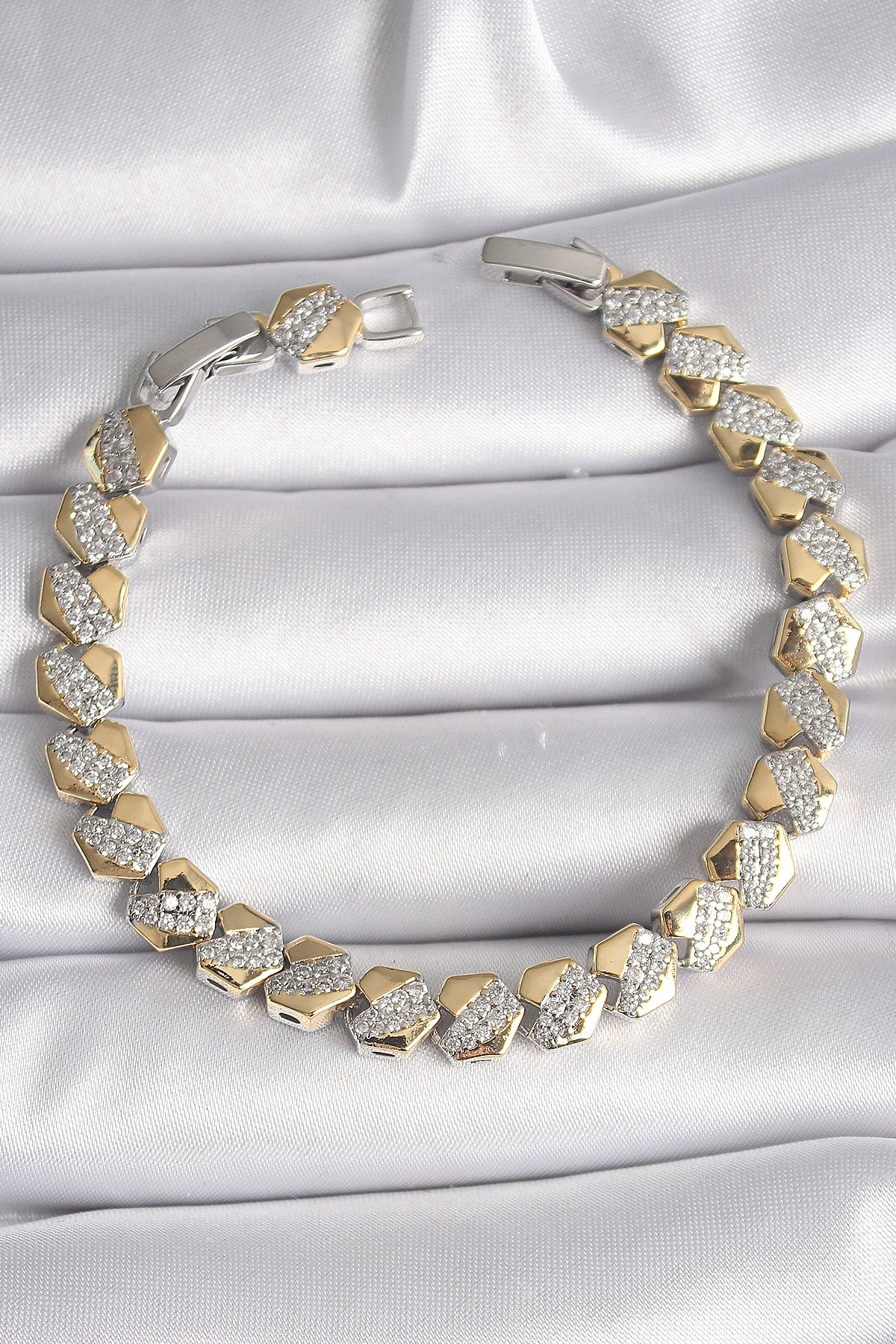 Pirinç Mix Renk Kalp Model Zirkon Taşlı VIP Seri Kadın Bileklik - TJ-BB6494