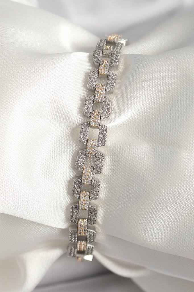Pirinç Mix Renk Zirkon Taşlı Zincir Model VIP Seri Kadın Bileklik - TJ-BB6811
