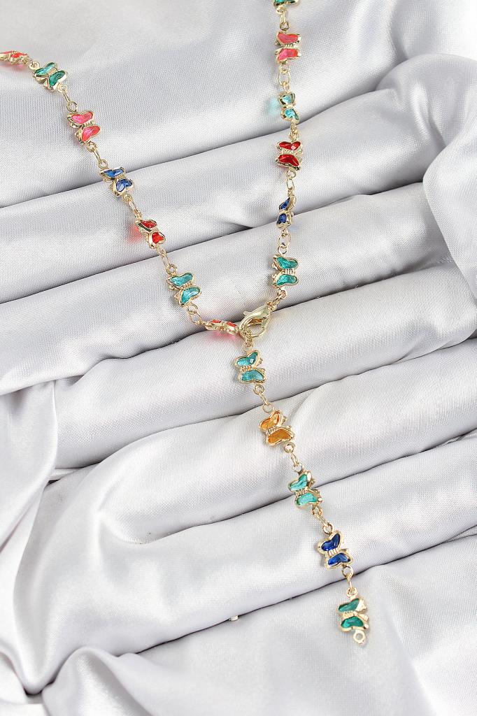 Pirinç Renkli Zirkon Taşlı Kelebek Model Gold Renk Kadın Y Kolye - BKO10386