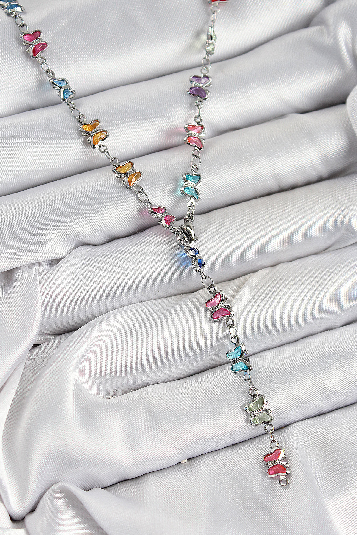 Pirinç Renkli Zirkon Taşlı Kelebek Model Gümüş Renk Kadın Y Kolye - TJ-BKO10387