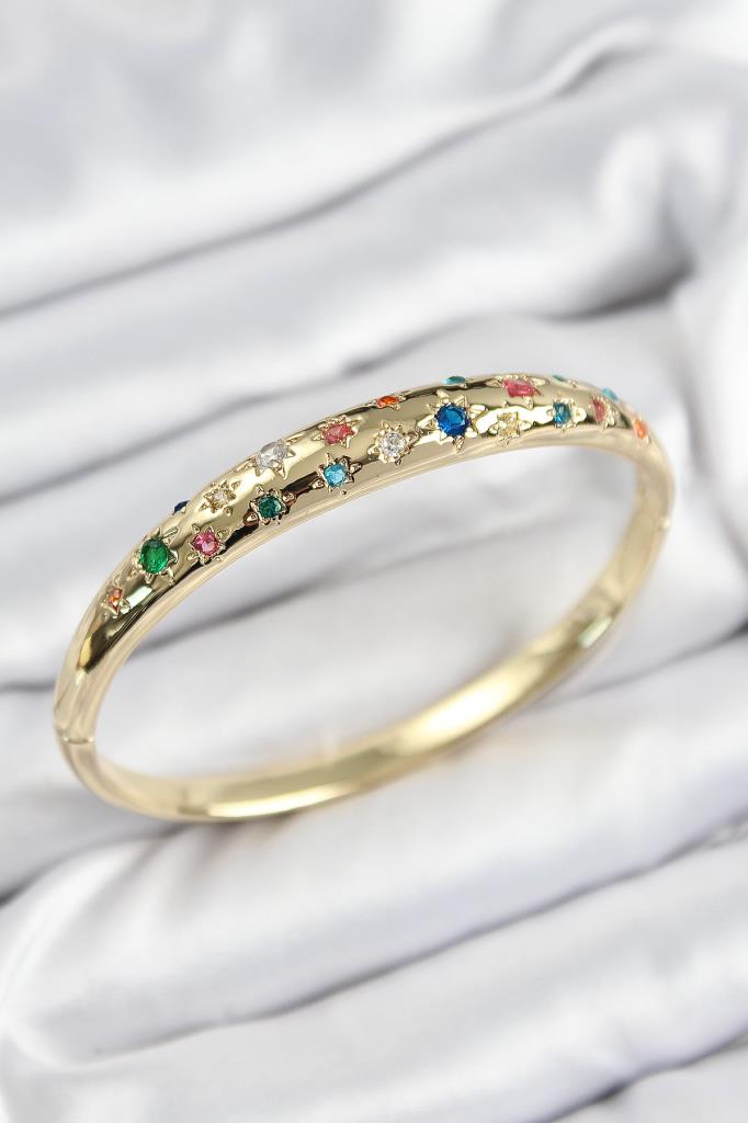 Pirinç Renkli Zirkon Taşlı Kutup Yıldızı Model Gold Renk Kadın Kelepçe - BB7572
