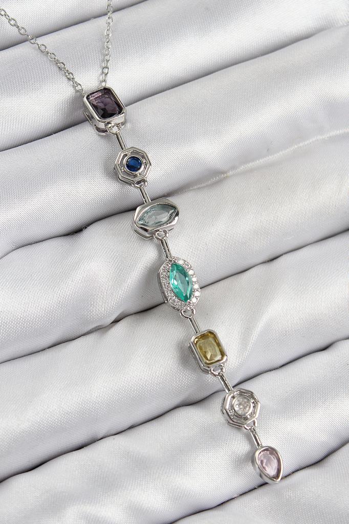 Pirinç Renkli Zirkon Taşlı Model Gümüş Renk Kadın Y Kolye - BKO10440