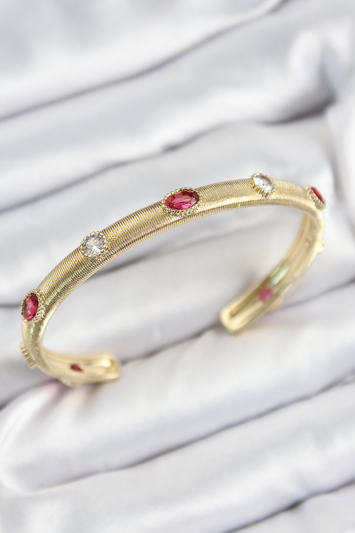 Pirinç Renkli Zirkon Taşlı Vintage Model Gold Renk Kadın Kelepçe - TJ-BB7578