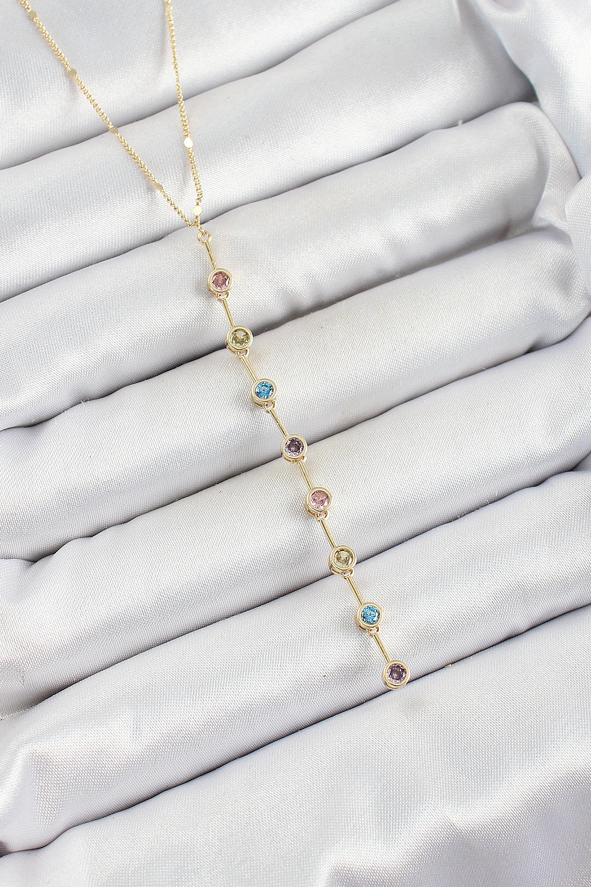 Pirinç Renkli Zirkon Taşlı Y Model Gold Renk Kadın Kolye - TJ-BKO10306