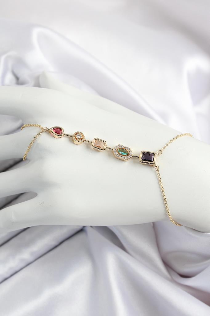 Pirinç Renkli Zirkon Taşlı Y Model Gold Renk Kadın Şahmeran - SN679