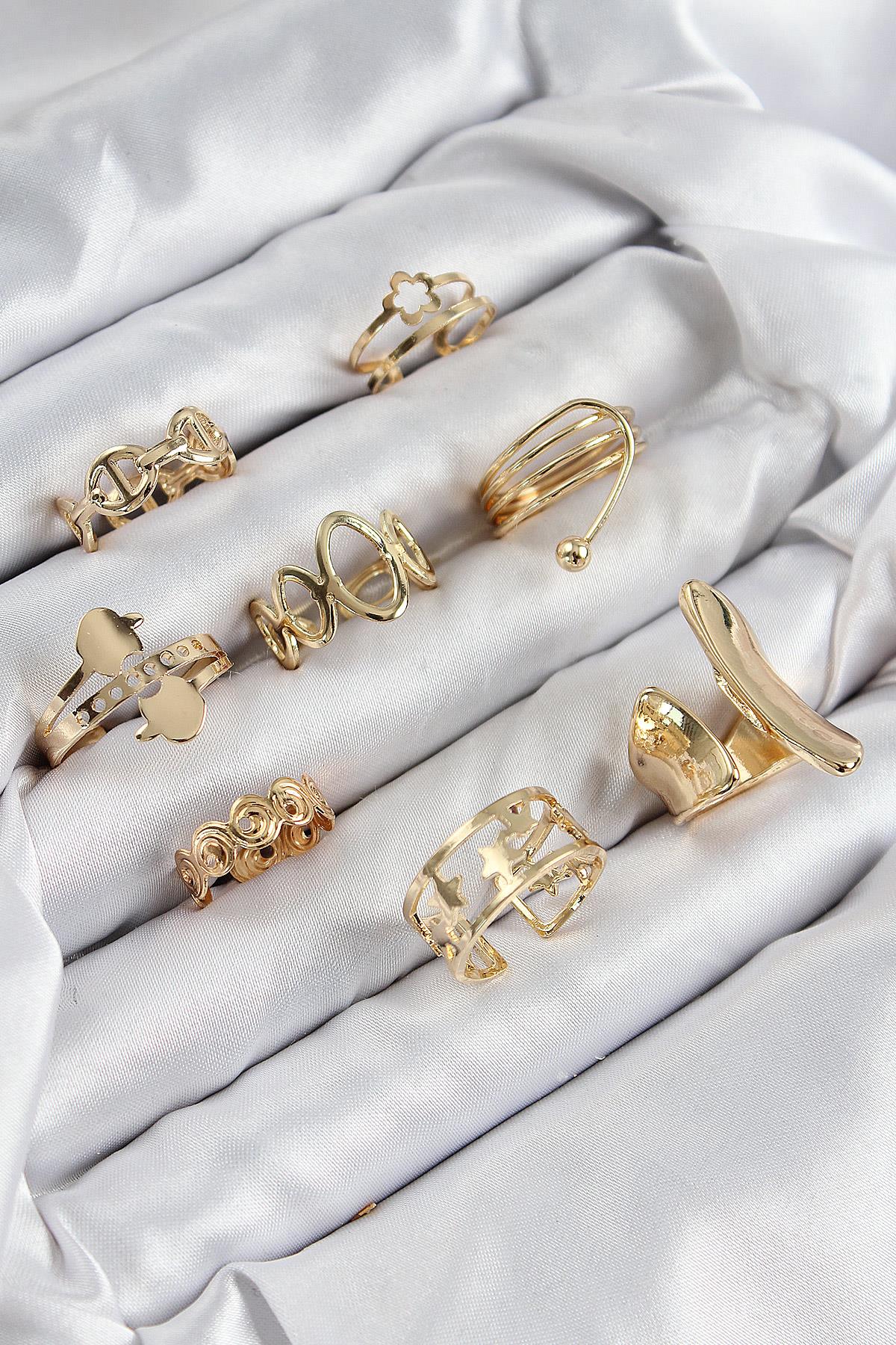 Pirinç Sarmal Ve Yıldız Model Gold Renk Kadın Yüzük Kombin Set - BYK3813