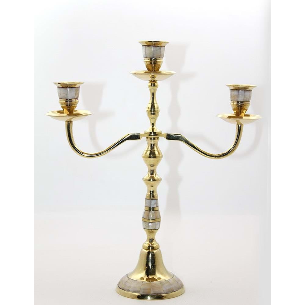 Pirinç Sedefli 3'Lü Şamdan