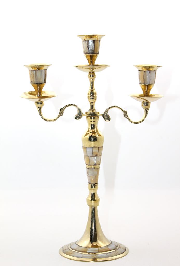 Pirinç Sedefli 3'lü Şamdan Model 1
