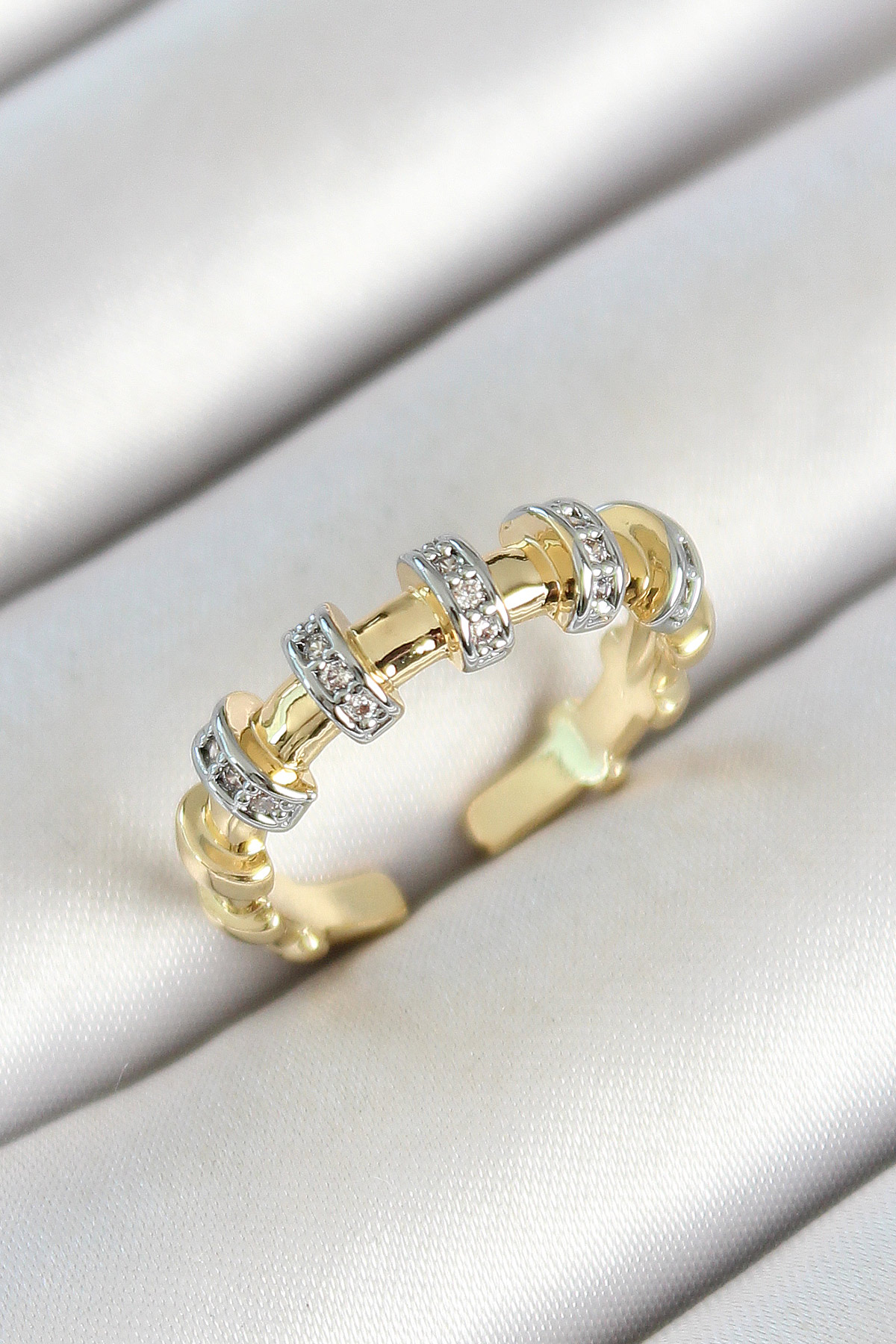 Pirinç Sıralı Daire Figürlü Zirkon Taşlı Gold Renk Ayarlanabilir Kadın Yüzük - TJ-BYK3783