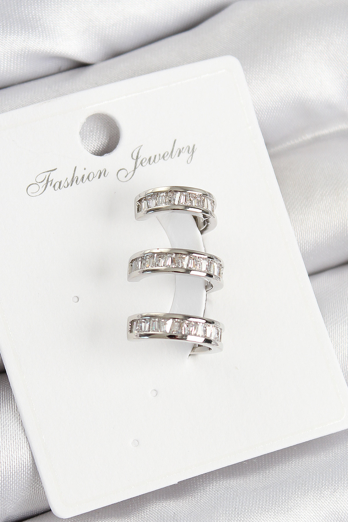 Pirinç Su Yolu Model Gümüş Renk Sağ Kıkırdak Küpe - TJ-BKP10989