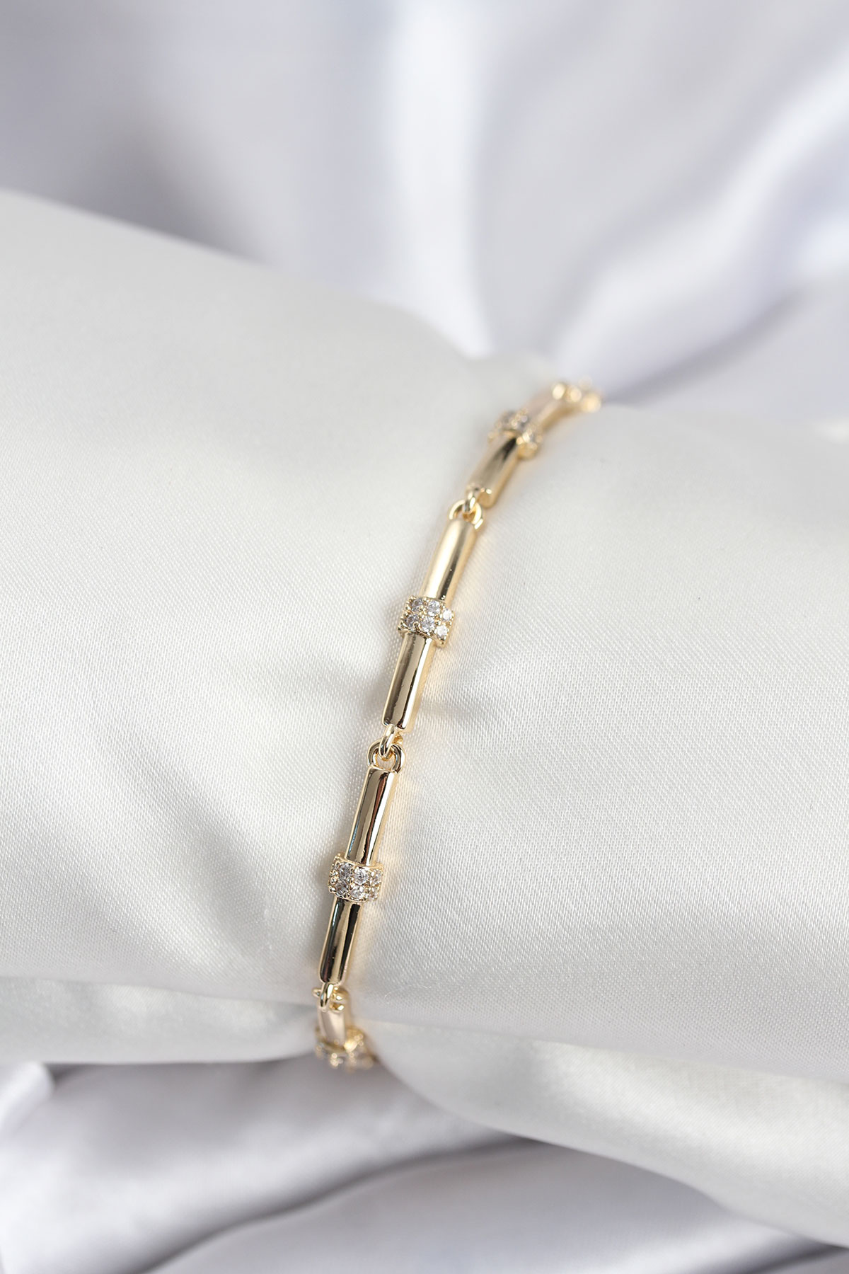 Pirinç VIP Seri Gold Renk Parçalı Model Zirkon Taşlı Kadın Bileklik - TJ-BB7941