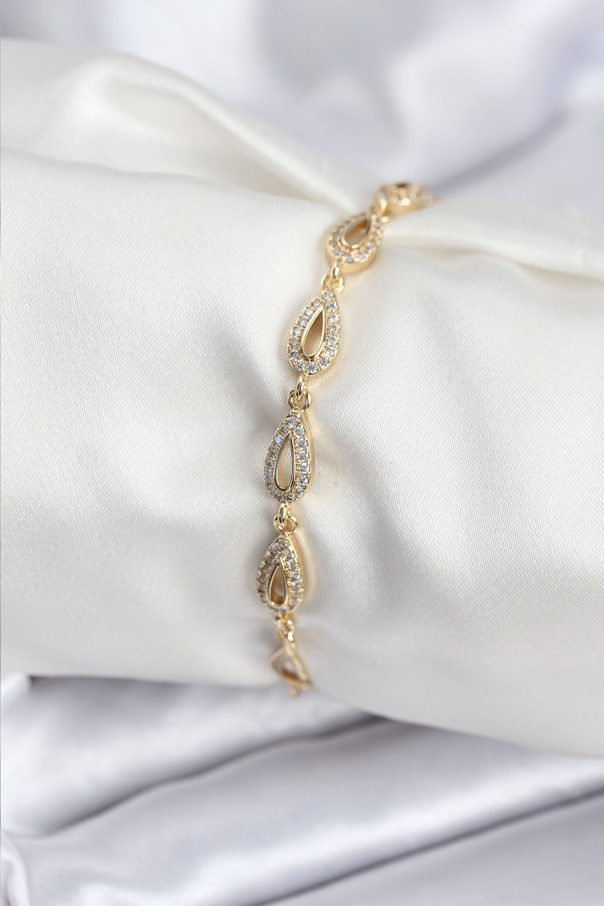 Pirinç VIP Seri Gold Renk Sıralı Damla Model Kadın Bileklik - TJ-BB7932