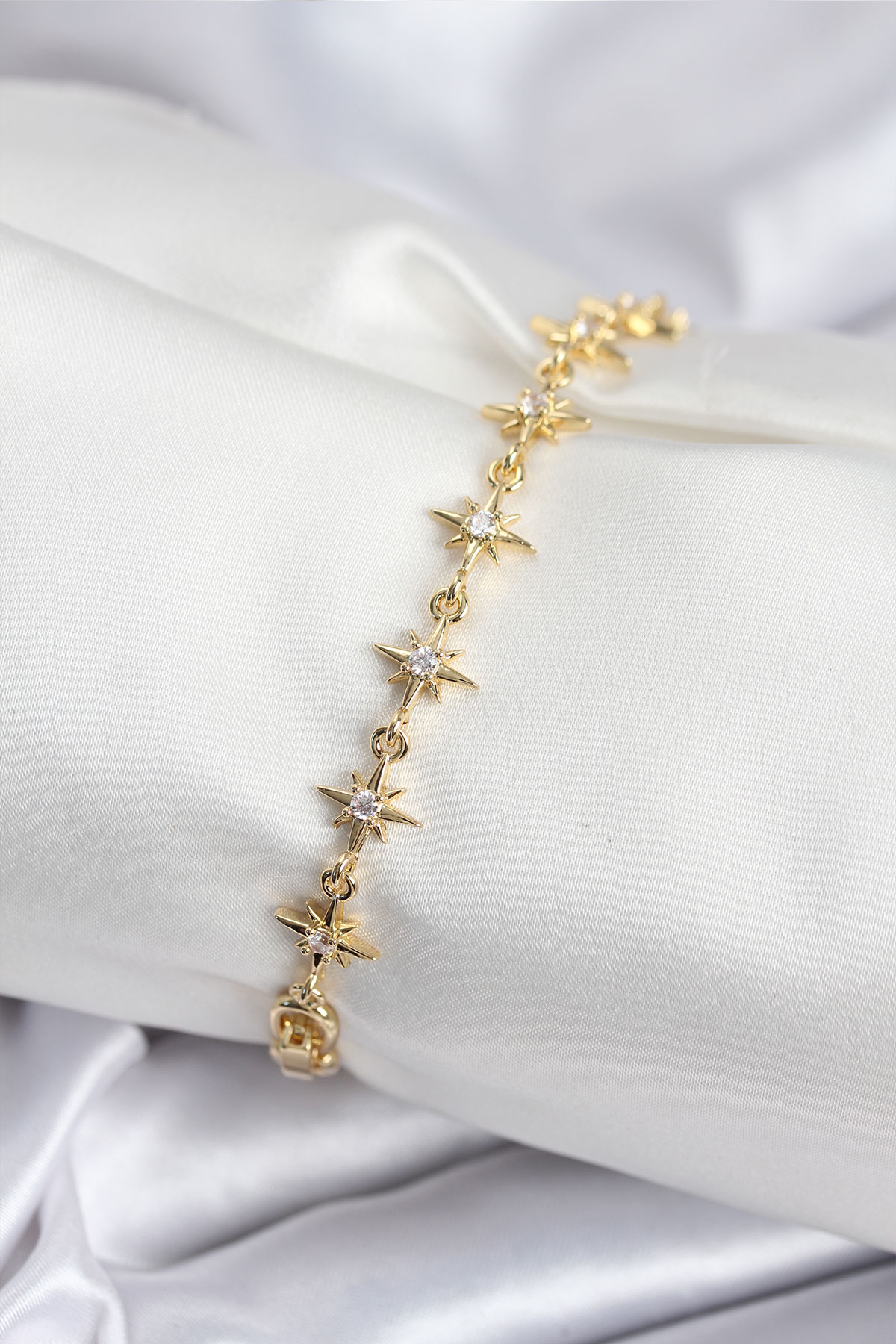 Pirinç VIP Seri Gold Renk Sıralı Kutup Yıldızı Kadın Bileklik - TJ-BB7927