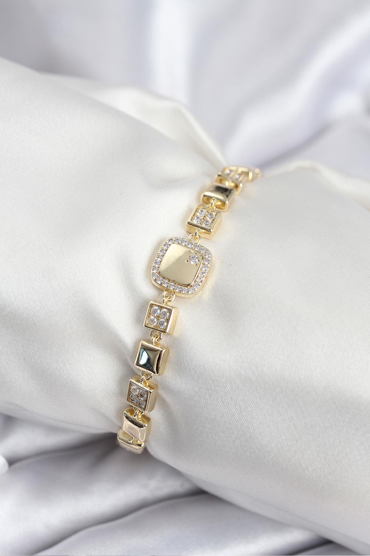Pirinç VIP Seri Gold Renk Zirkon Taşlı Model Kadın Bileklik - TJ-BB7940