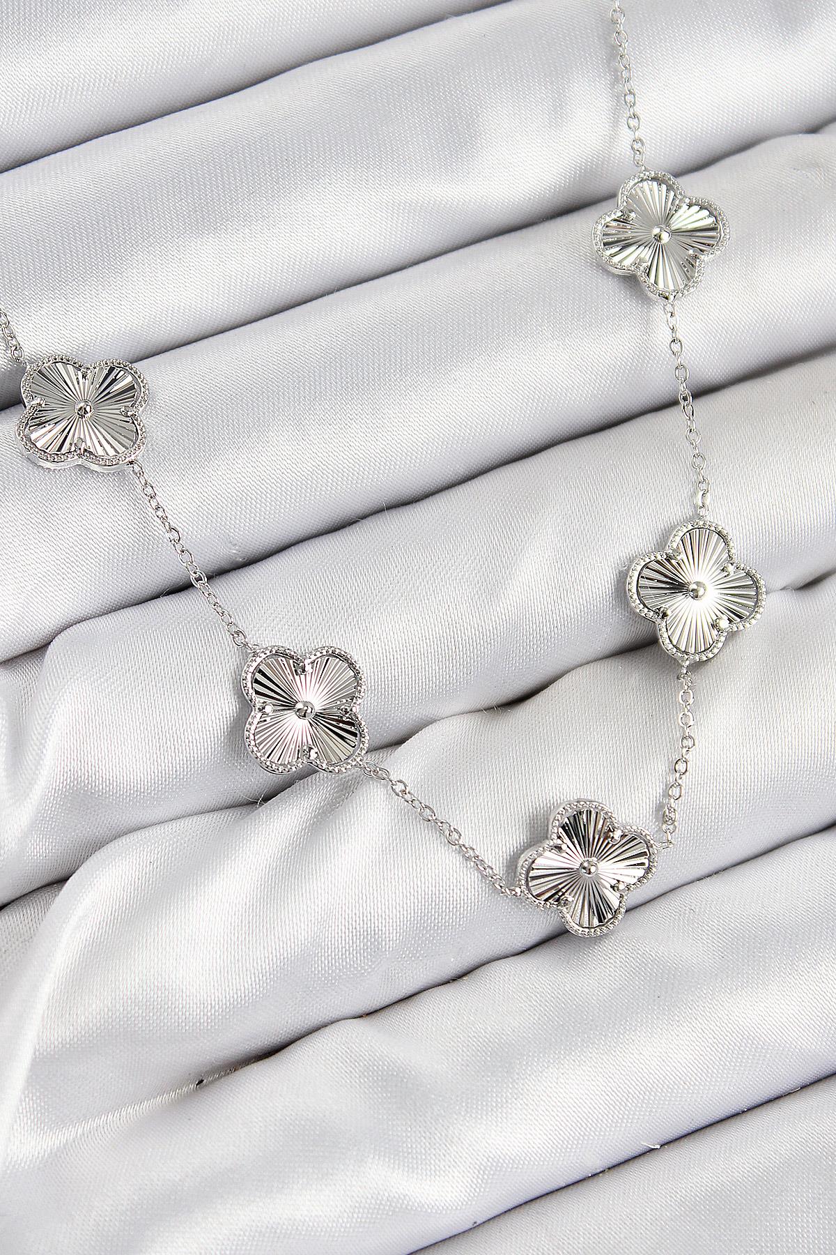 Pirinç VIP Yonca Model Gümüş Renk Kadın Kolye - TJ-BKO10483