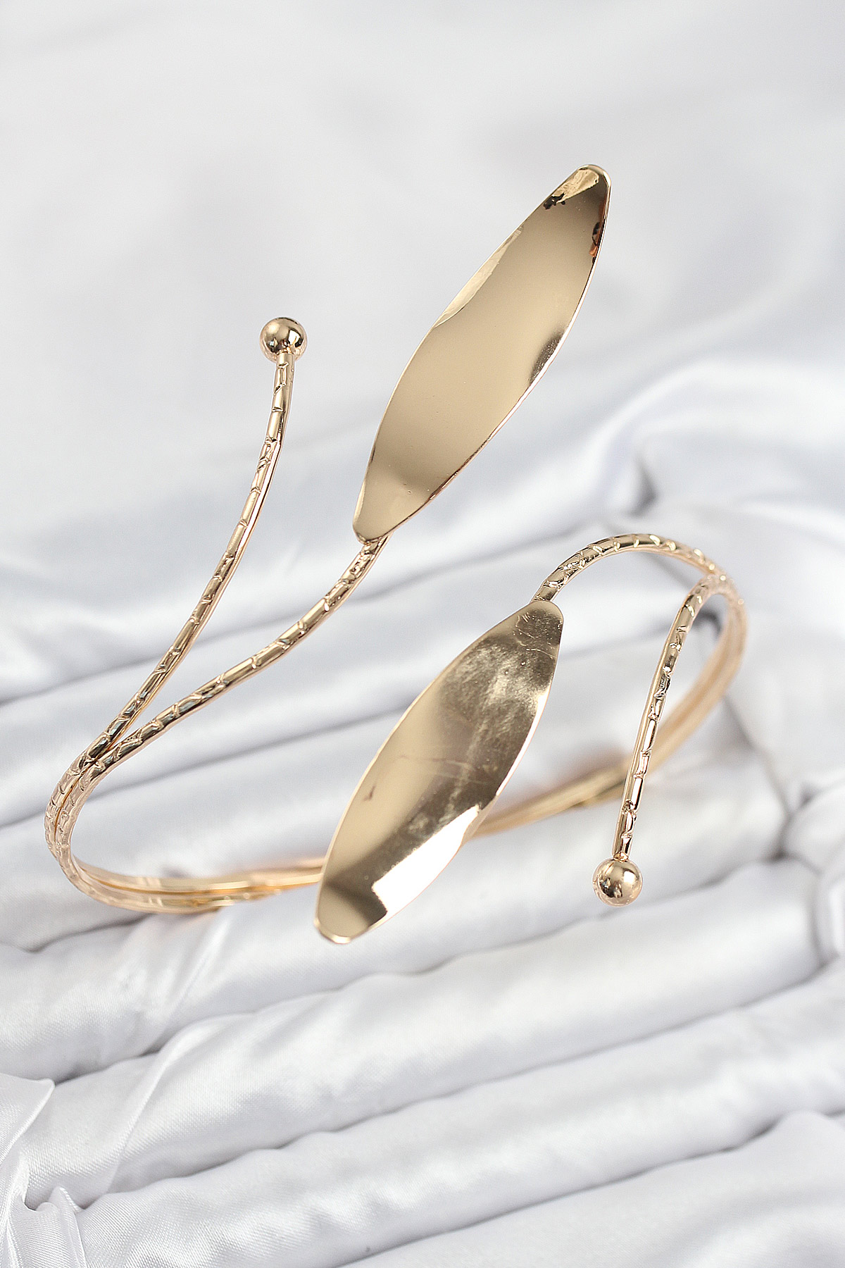 Pirinç Yaprak Model Gold Renk Kadın Pazu Bileklik - TJ-BB7794