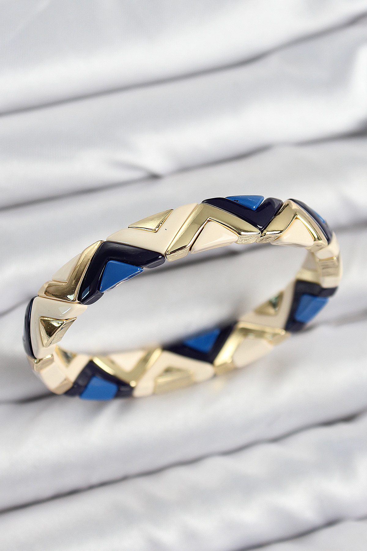 Pirinç Zikzak Desenli Lacivert Krem Siyah Gold Renk Lastikli Kadın Bileklik - TJ-BB7646