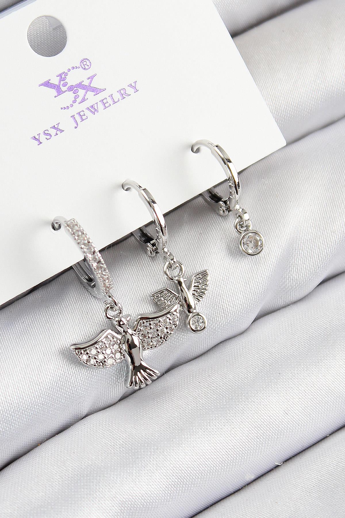 Pirinç Zirkon Taşlı 3'lü Kuş Model Gümüş Renk Kadın Küpe - BKP11132