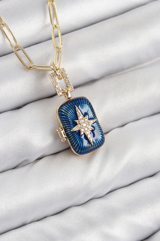 Pirinç Zirkon Taşlı Açılabilir Kutup Yıldızı Model Gold Renk Kadın Kolye - BKO10430