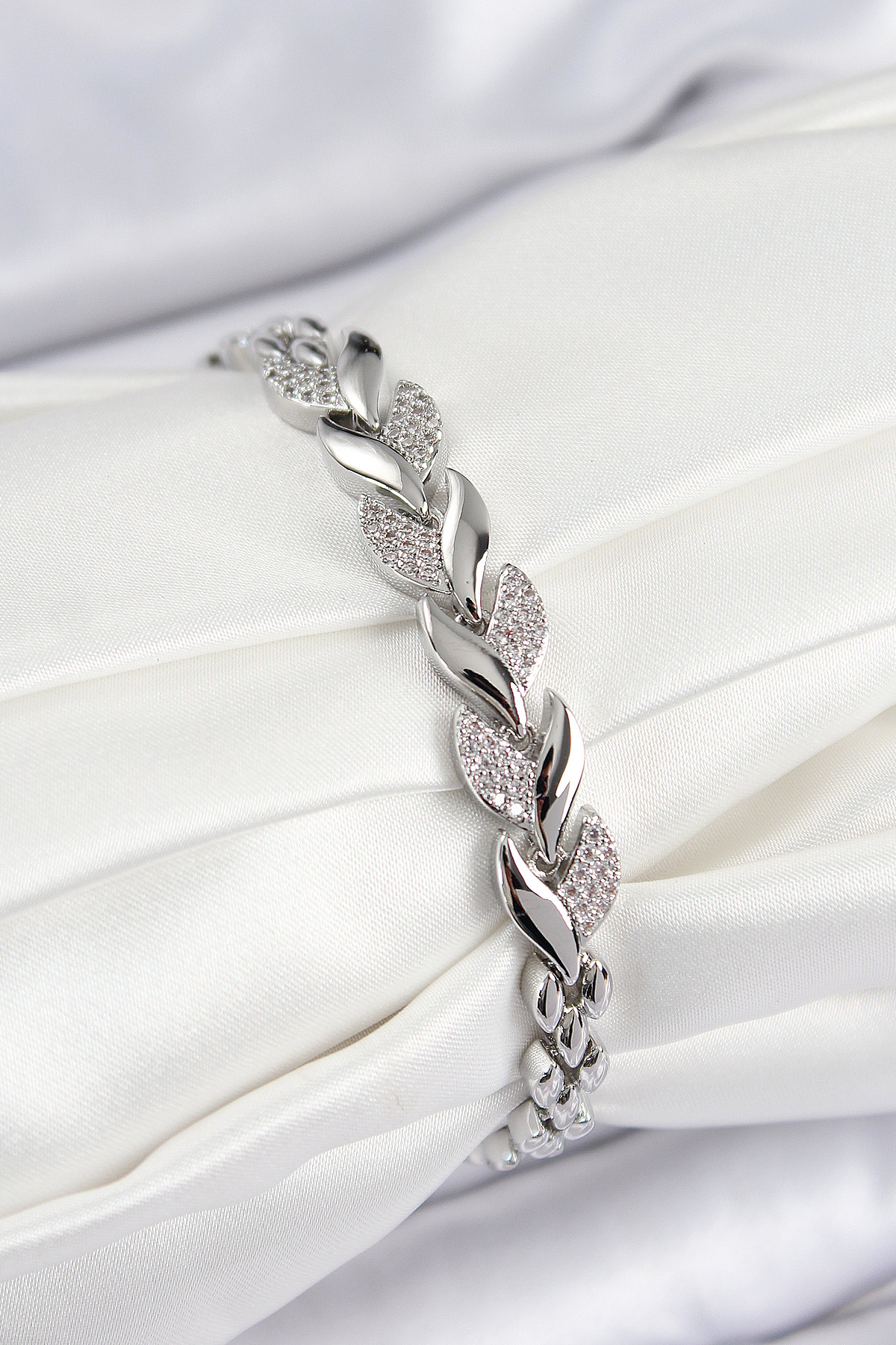 Pirinç Zirkon Taşlı Balık Kuyruğu Model Gümüş Renk Kadın Bileklik - TJ-BB7530
