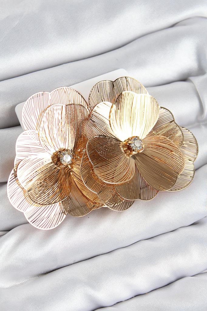 Pirinç Zirkon Taşlı Çiçek Model Gold Renk Kadın Küpe - BKP11023