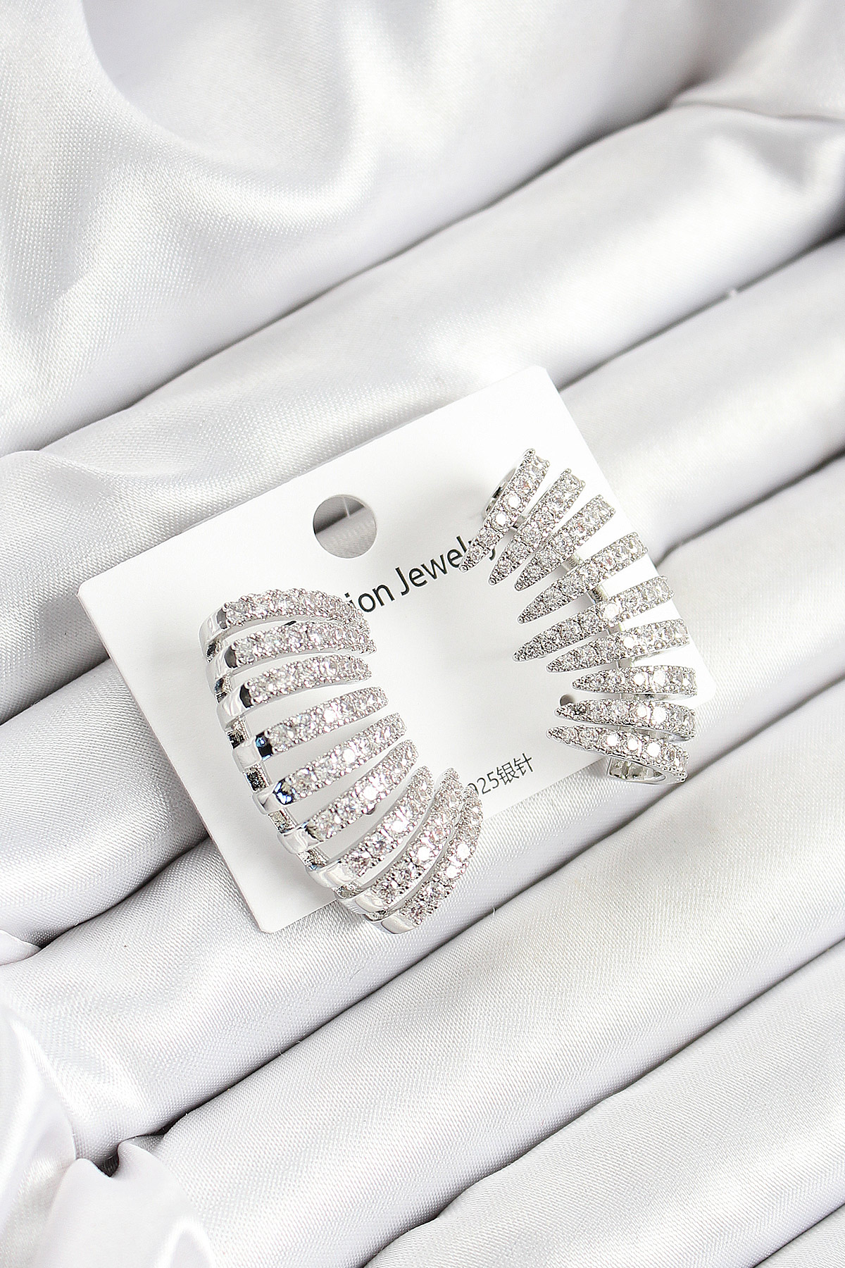 Pirinç Zirkon Taşlı Çoklu Görünümlü Model Gümüş Renk Kadın Küpe - TJ-BKP10631