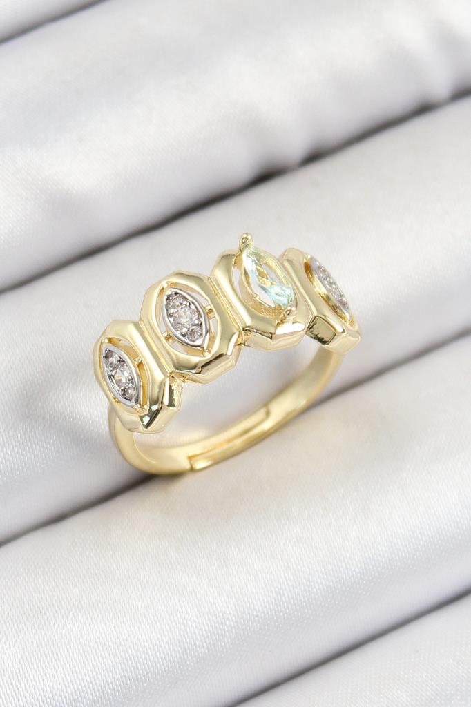 Pirinç Zirkon Taşlı Damla Model Gold Renk Kadın Yüzük - BYK3793