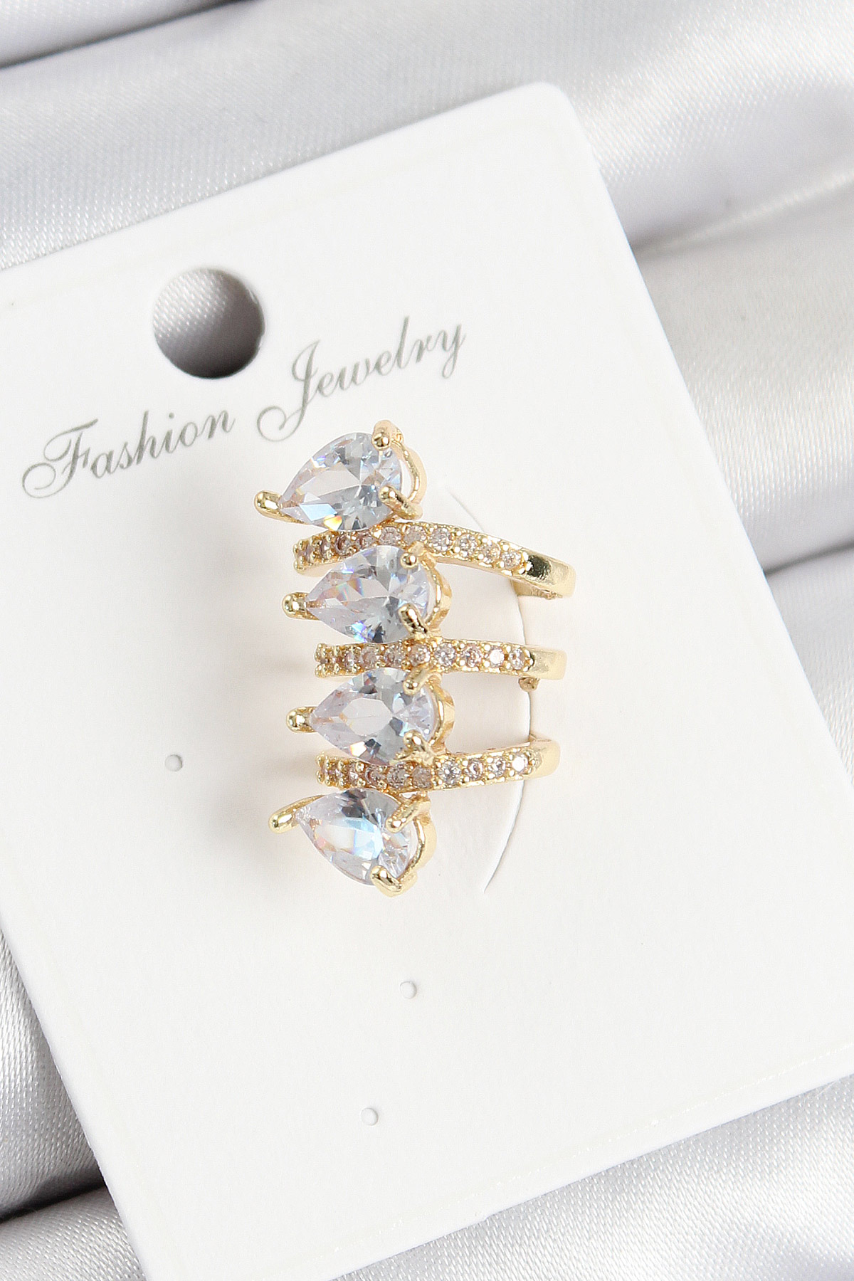 Pirinç Zirkon Taşlı Damla Model Gold Renk Sağ Kıkırdak Küpe - TJ-BKP10996
