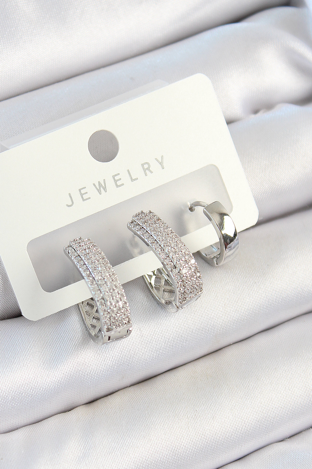 Pirinç Zirkon Taşlı Damla Model Gümüş Renk 3'lü Çift Kadın Küpe Set - TJ-BKP10805