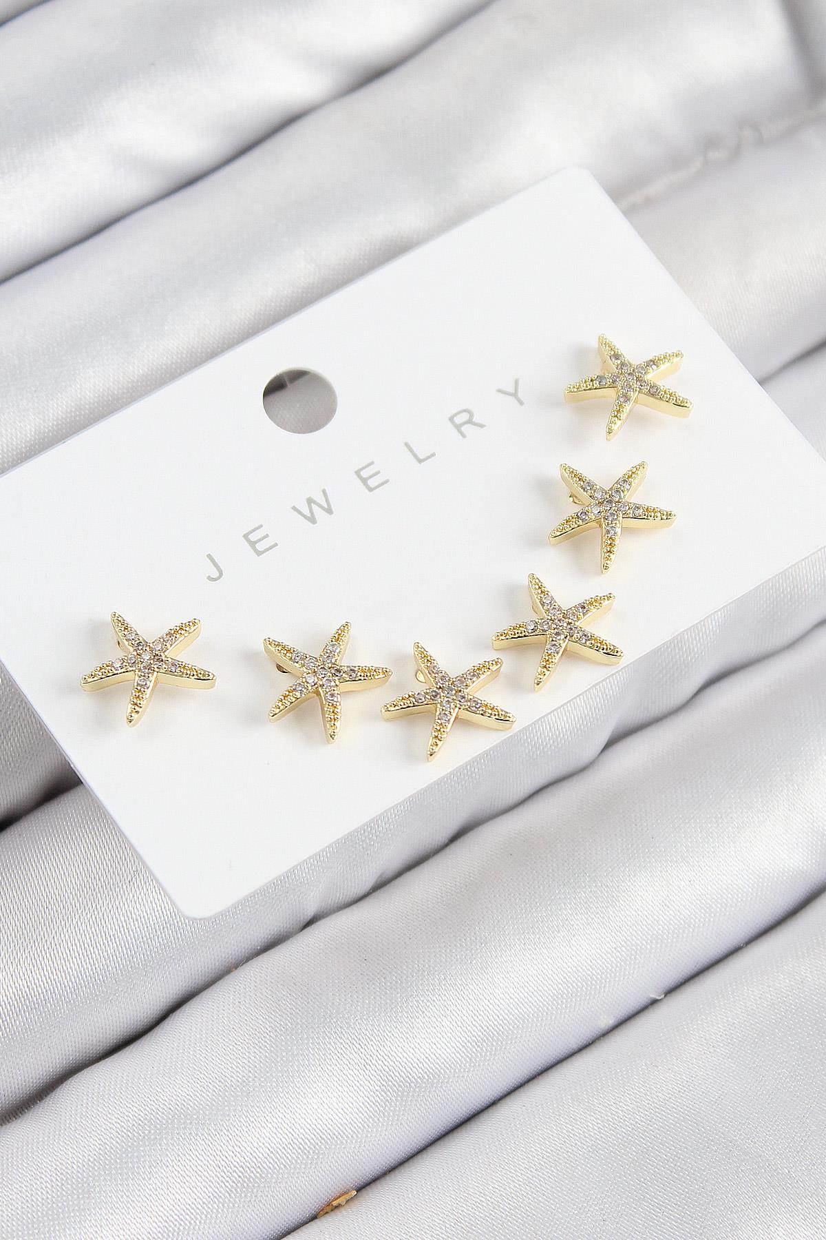 Pirinç Zirkon Taşlı Deniz Yıldızı Model Gold Renk 925 Ayar Gümüş Çivi Kadın Küpe Set - BKP11192