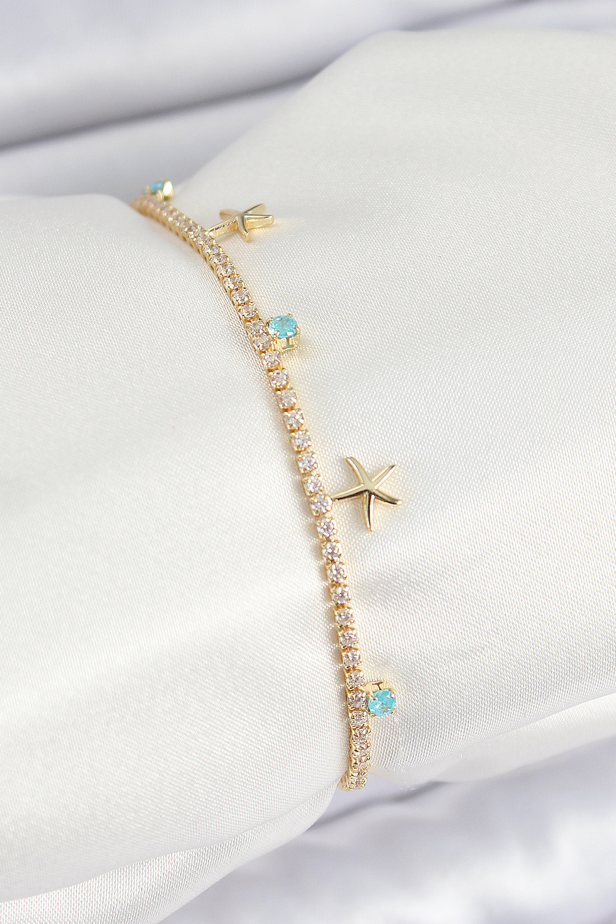 Pirinç Zirkon Taşlı Deniz Yıldızı Model Gold Renk Kadın Bilekilk - TJ-BB7662