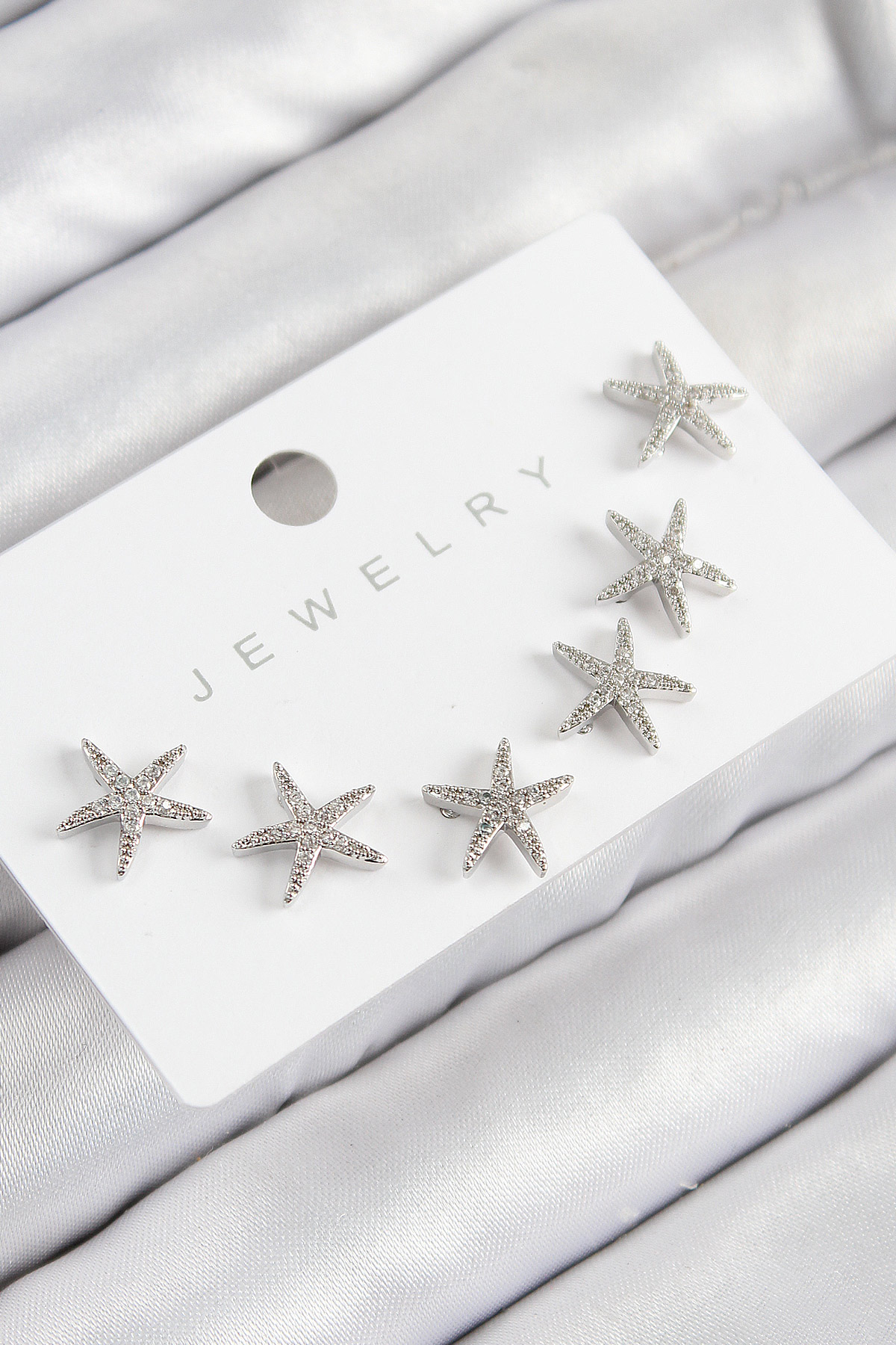 Pirinç Zirkon Taşlı Deniz Yıldızı Model Gümüş Renk 925 Ayar Gümüş Çivi Kadın Küpe Set - TJ-BKP11191