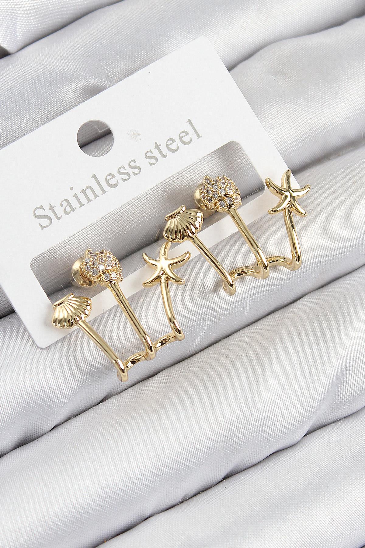 Pirinç Zirkon Taşlı Deniz Yıldızı ve İstiridye Model Gold Renk Kadın Küpe - BKP11103