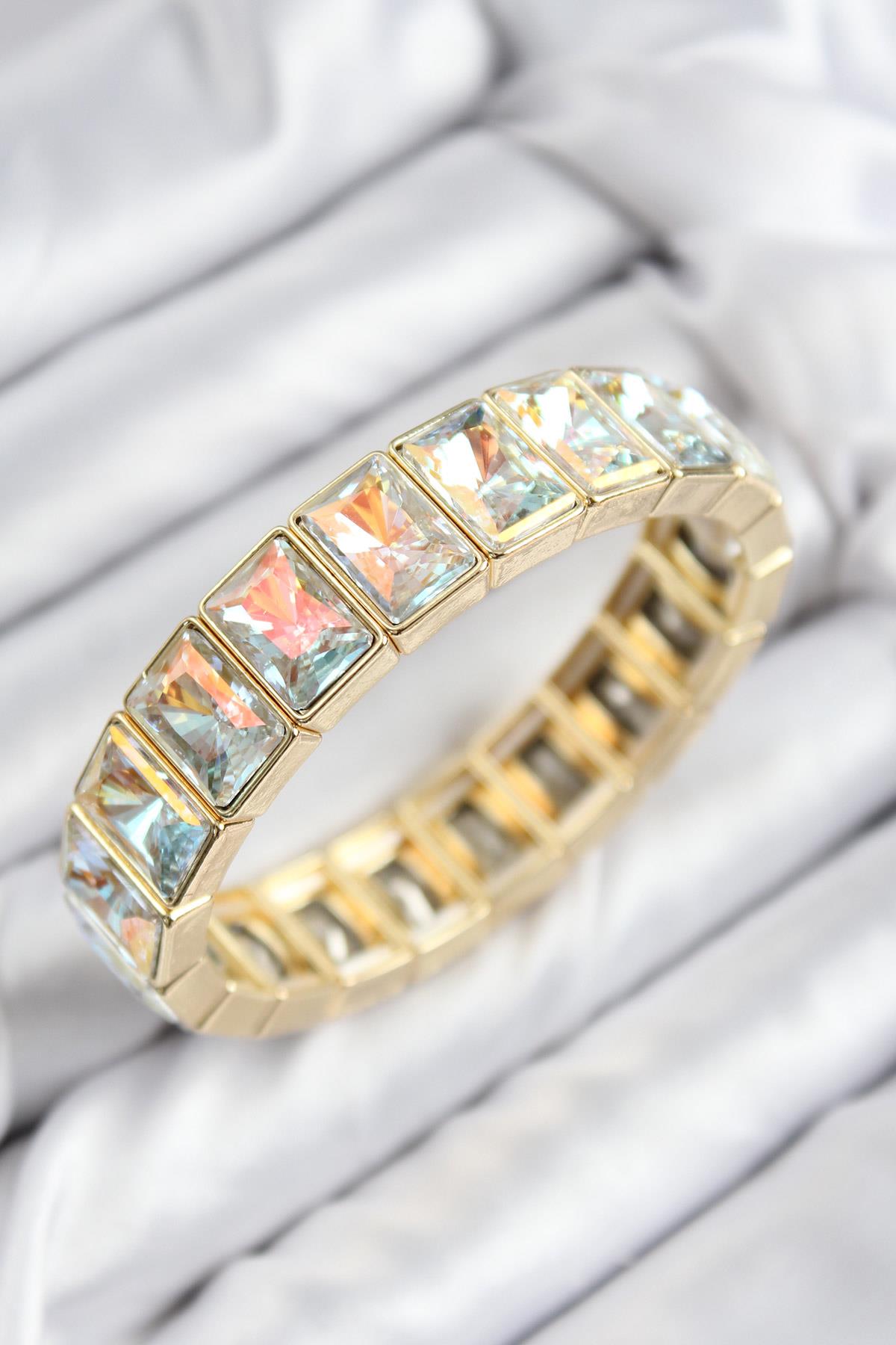 Pirinç Zirkon taşlı Dikdörtgen Gold Renk Lastikli Kadın Bileklik - BB7710