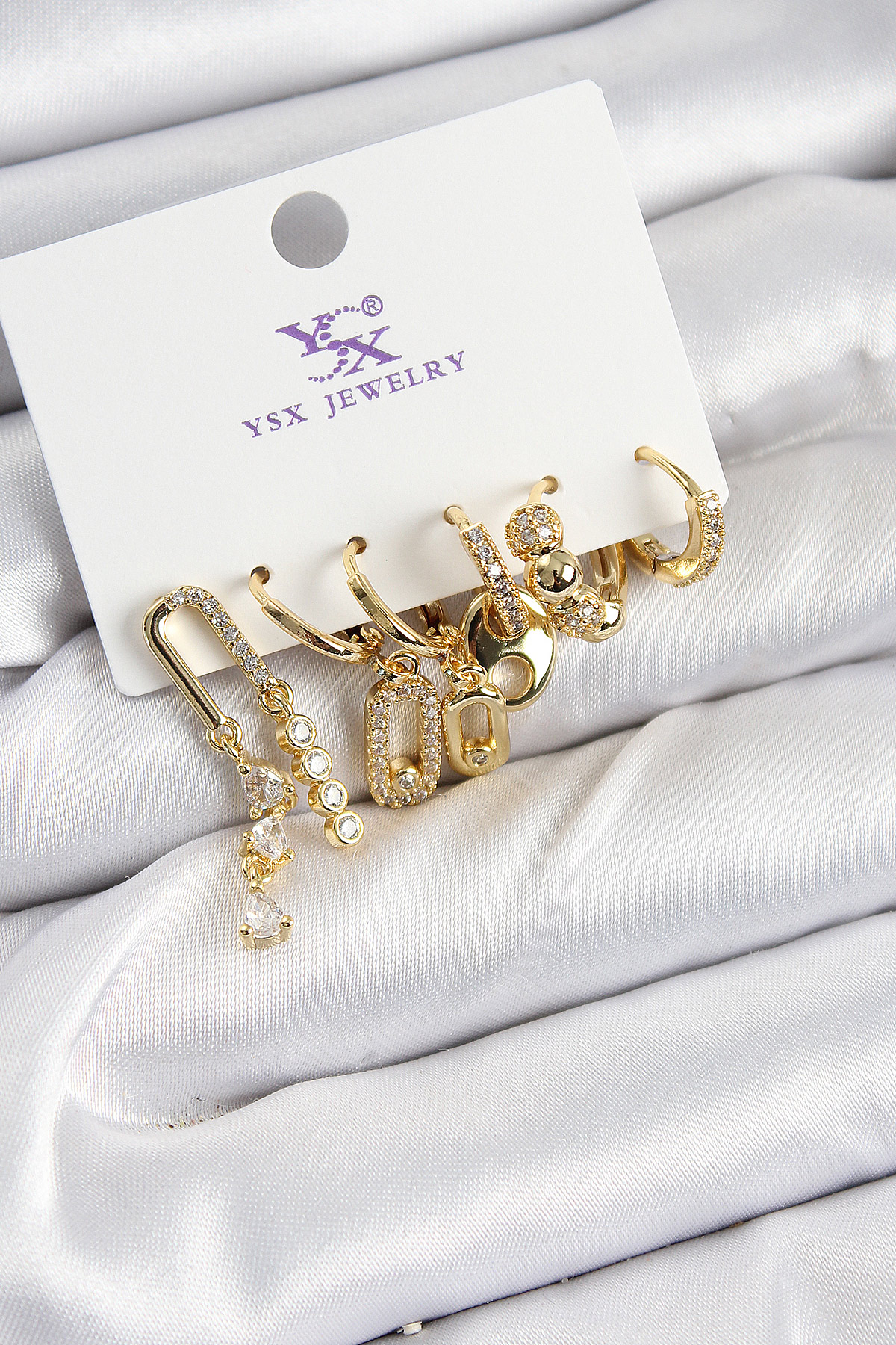 Pirinç Zİrkon Taşlı Dikdörtgen Model Gümüş Renk 3'lü Çift Kadın Küpe - TJ-BKP10955