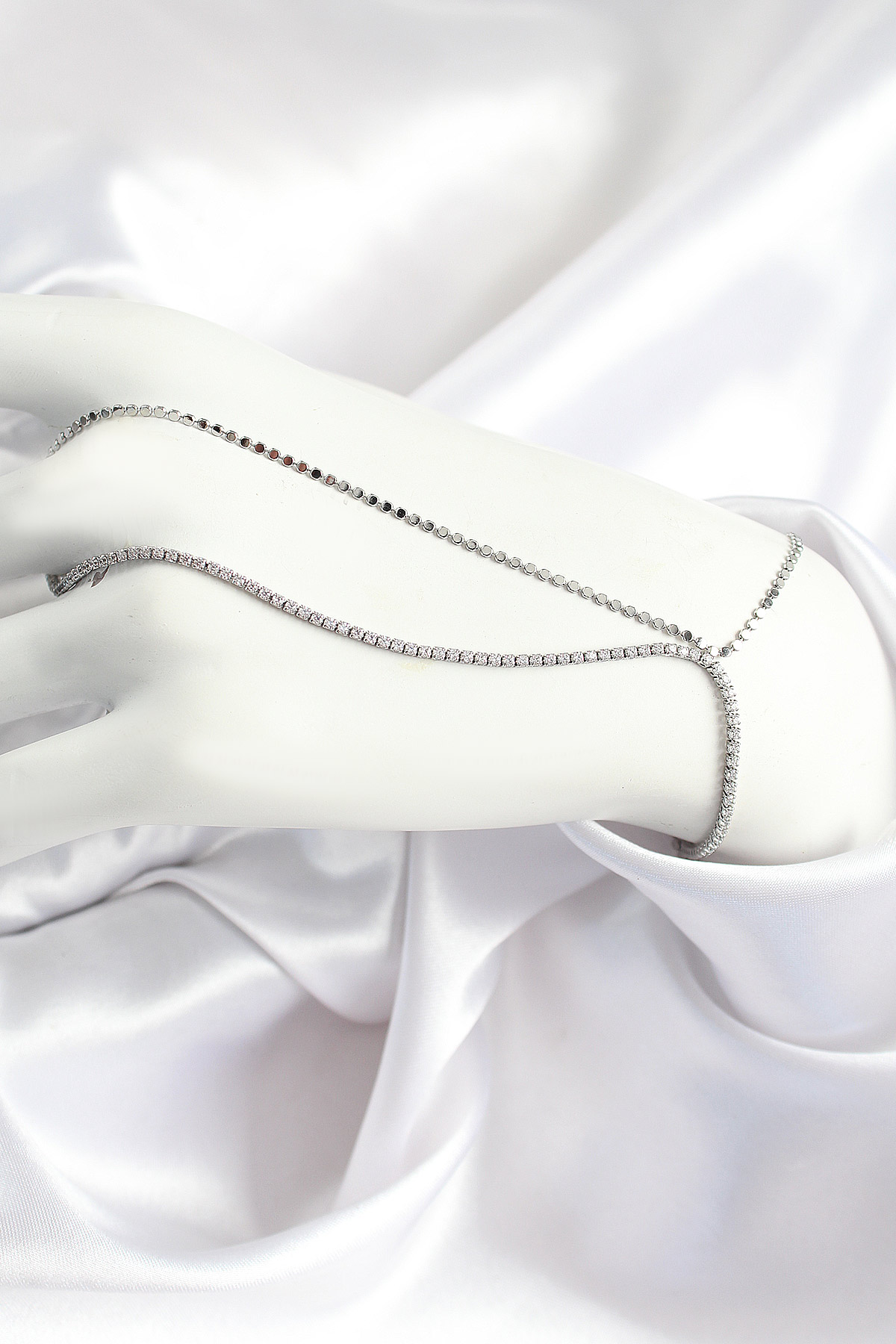 Pirinç Zirkon Taşlı Ezme Zincir Model Gümüş Renk Kadın Şahmeran - TJ-SN690